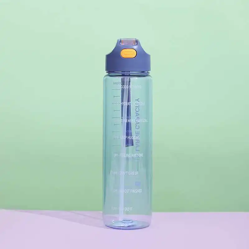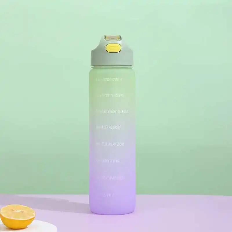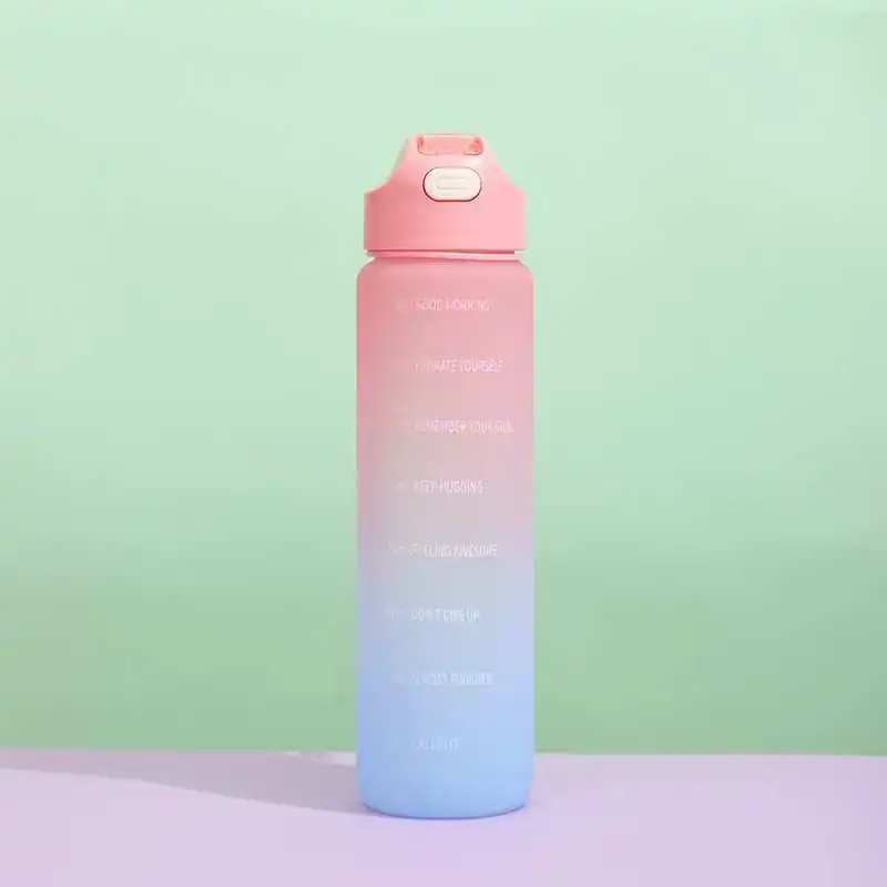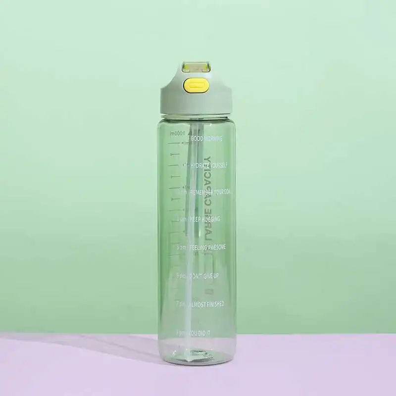 1L Large Capacity Transparent Colorful Motivational Water Bottle Plastic With Straw Time Marker