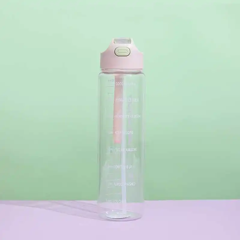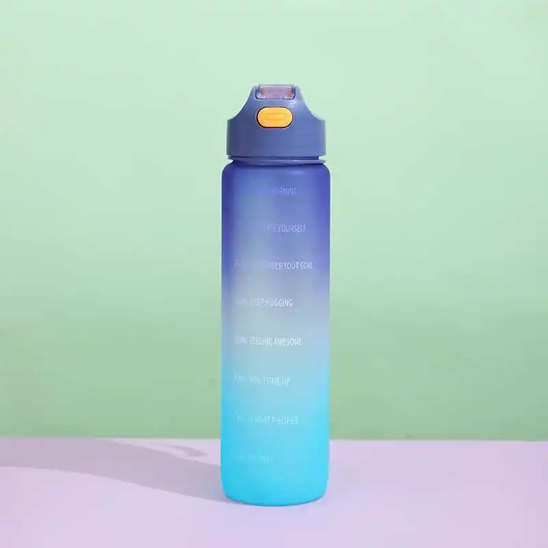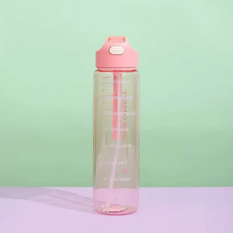 Home / Product Category / In Stock / 1L Large Capacity Transparent Colorful Motivational Water Bottle Plastic With Straw Time Marker