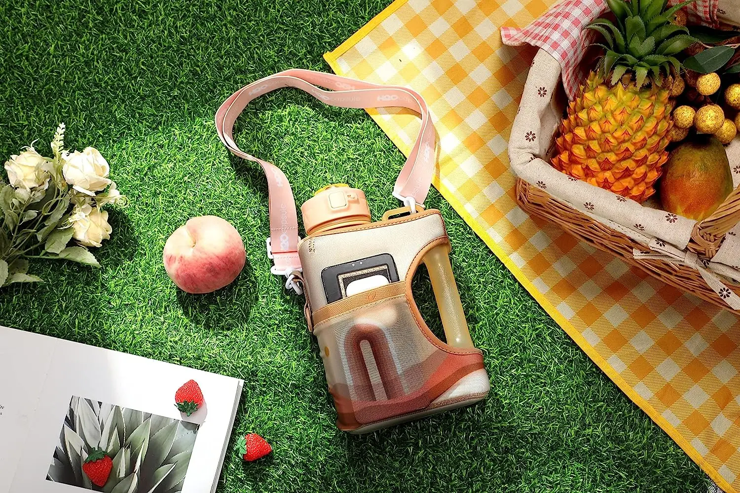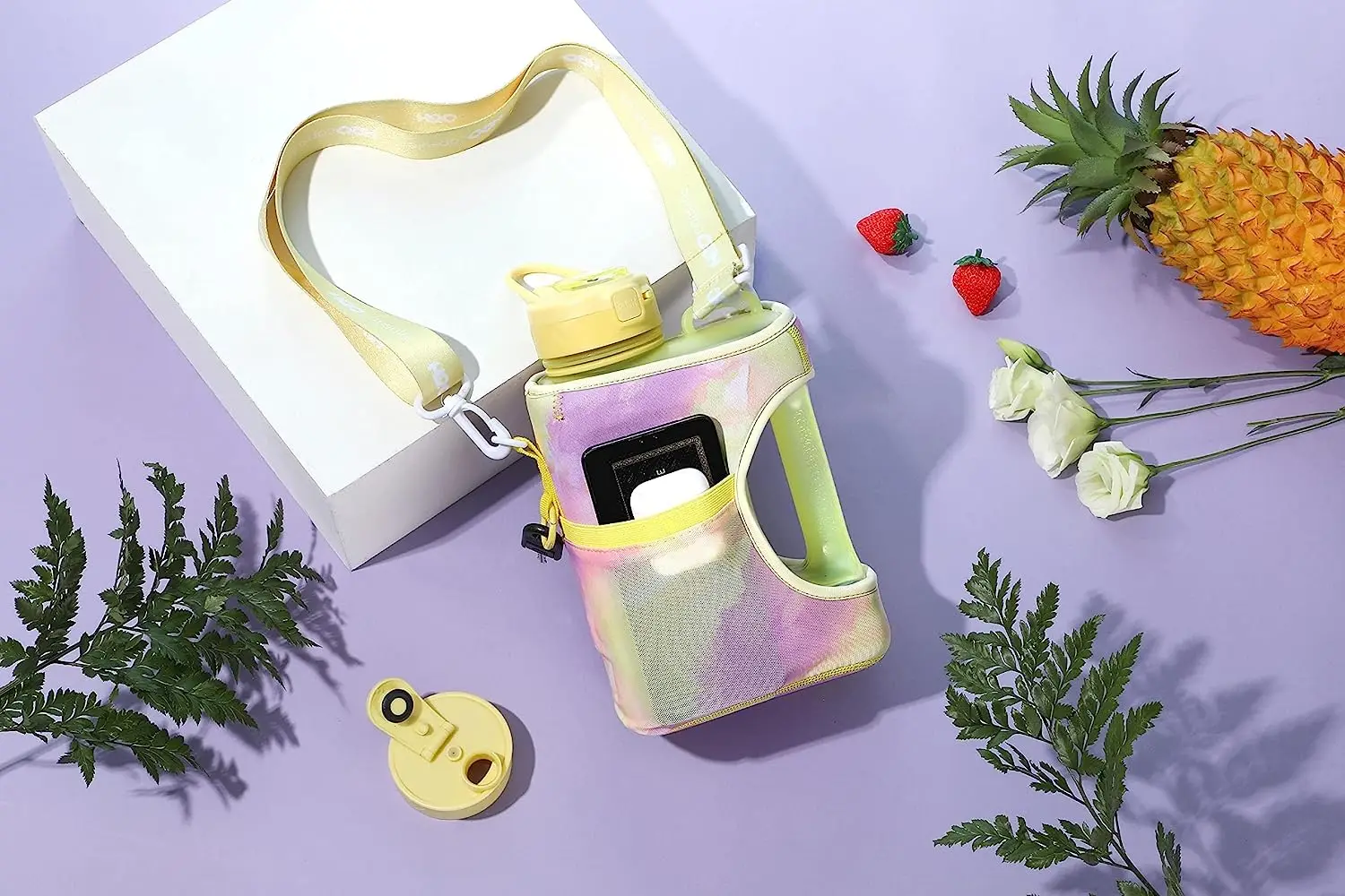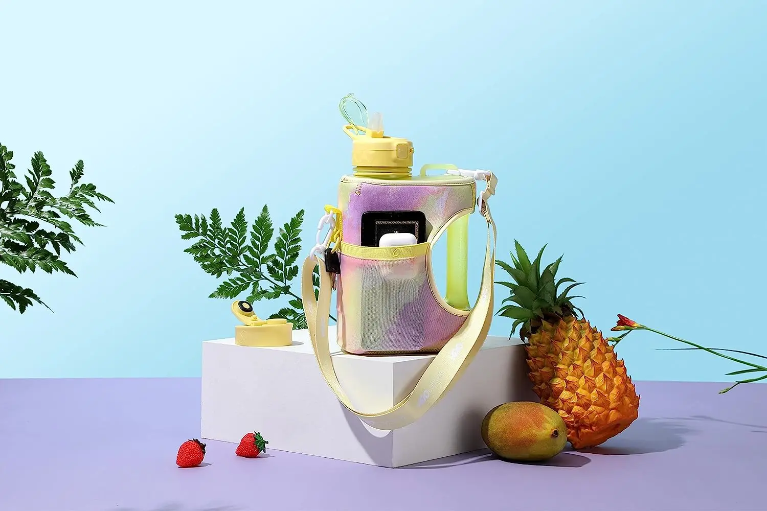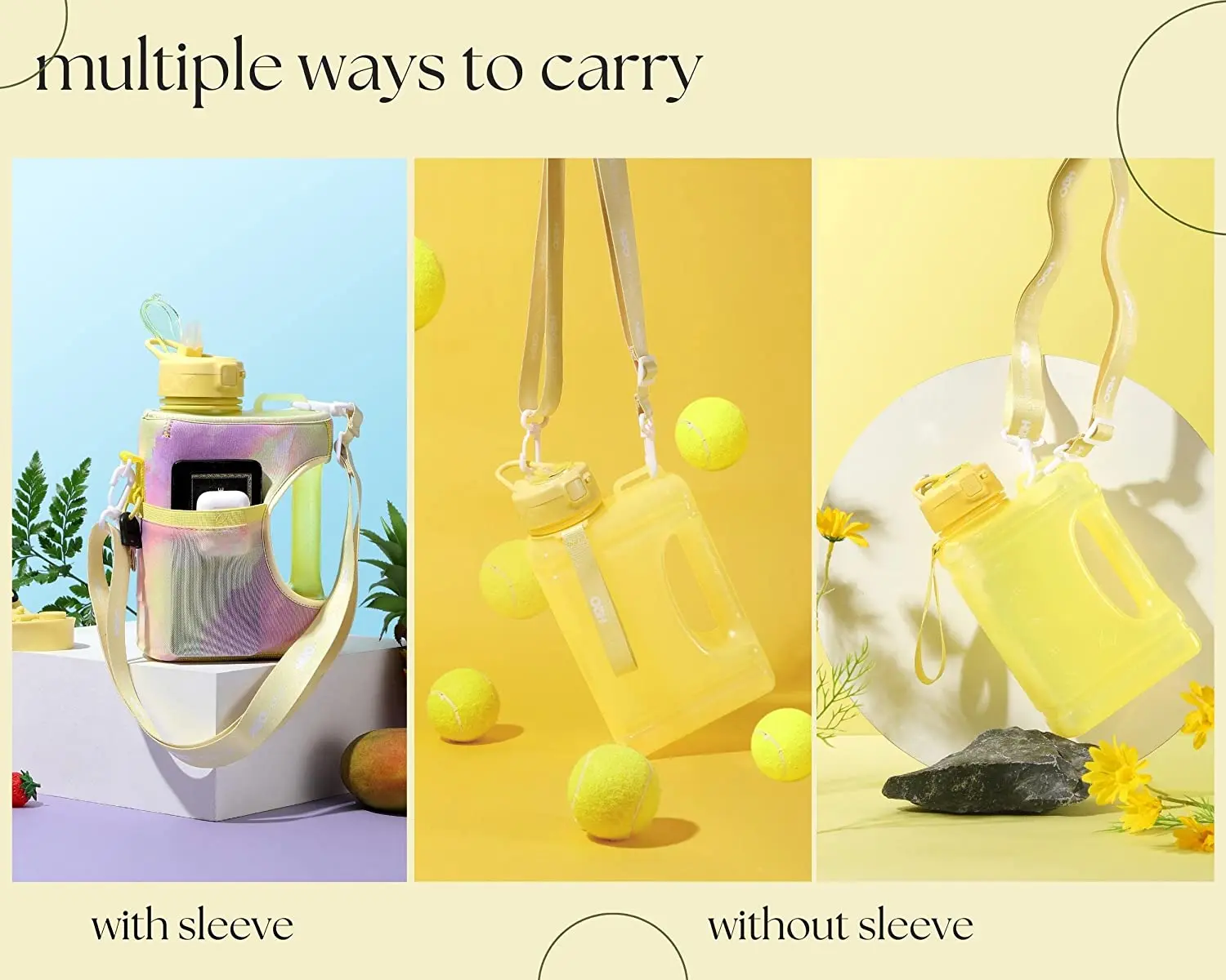 2.2L Half Gallon Water Bottle with Storage Sleeve Large Sippy Cup with Handle