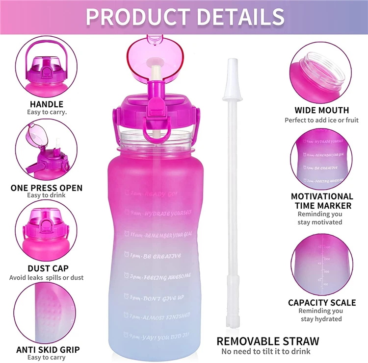 Home / Product Category / Plastic Water Bottle / 2023 2 Lt Lts Liter 2L Drinking Bottle Custom Logo Bpa Free Half Gallon Fitness Motivational Gym Sports Water Bottle With Straw