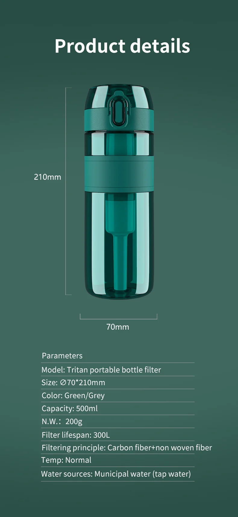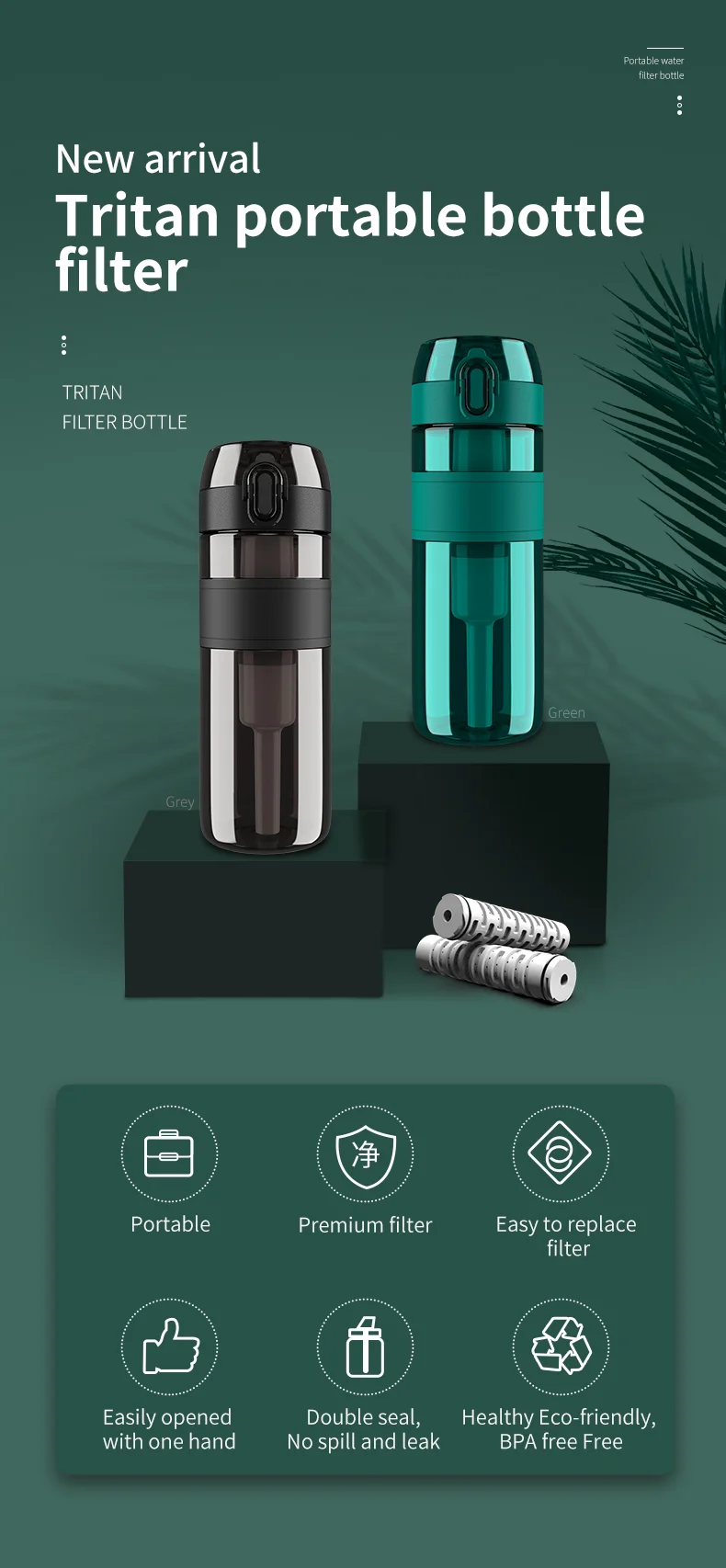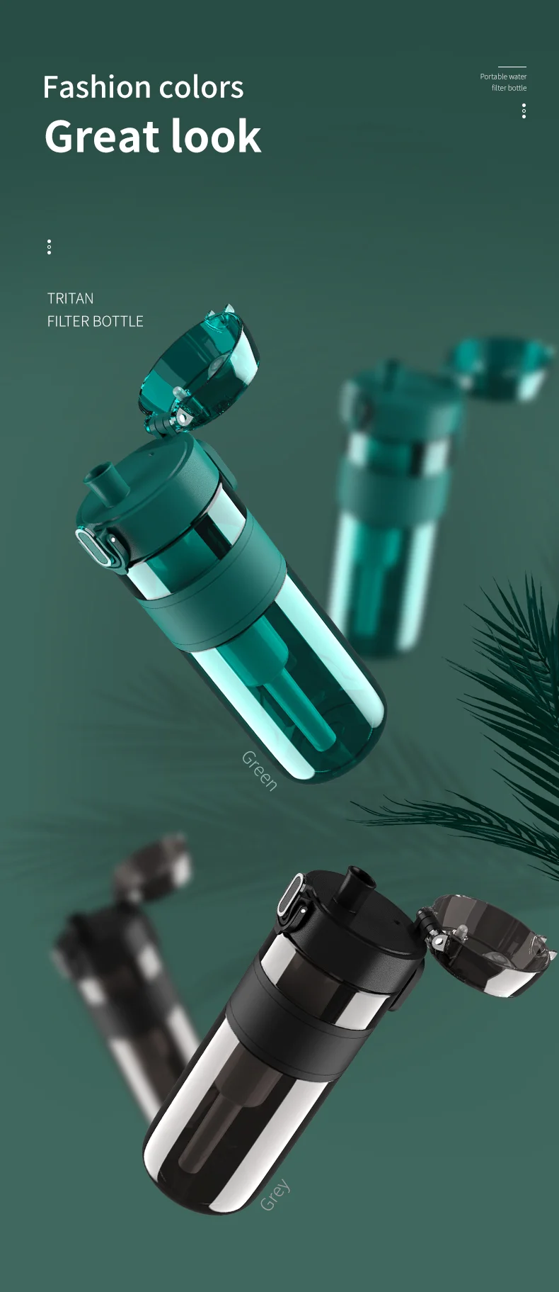 500ml BPA FREE PLASTIC Water Bottle Press the Button Pop-up Flip Lid Tritan Bottle Filter Portable Water Filter Bottle