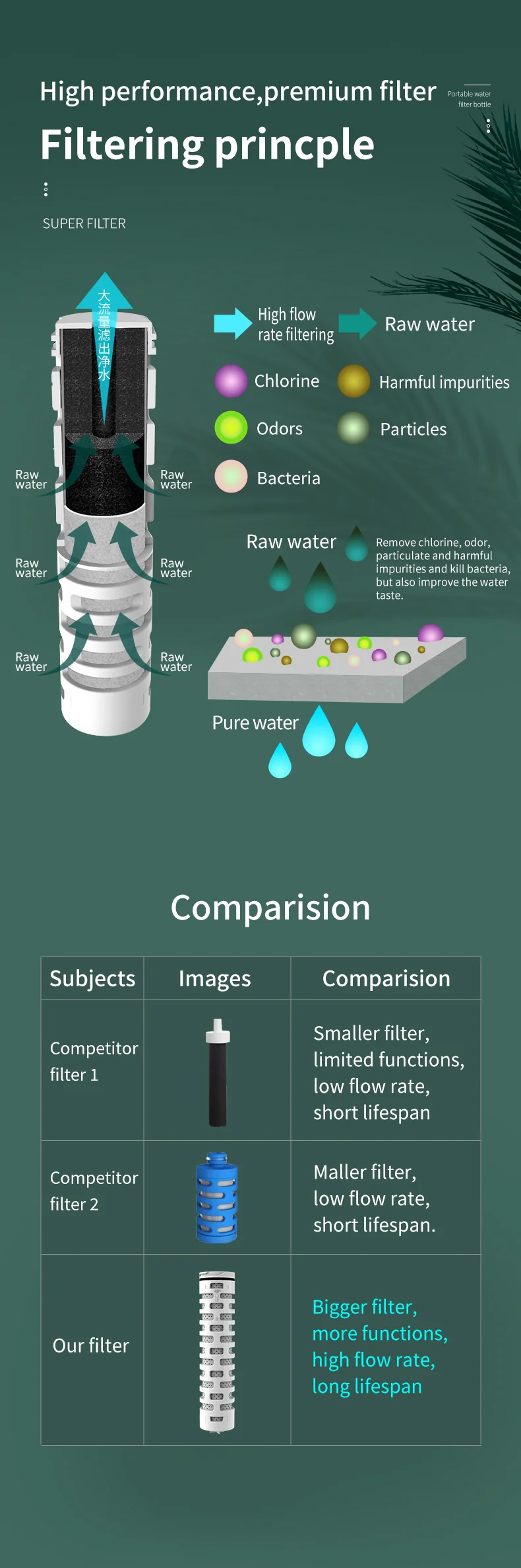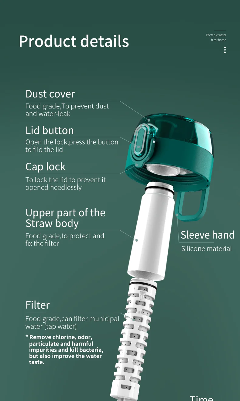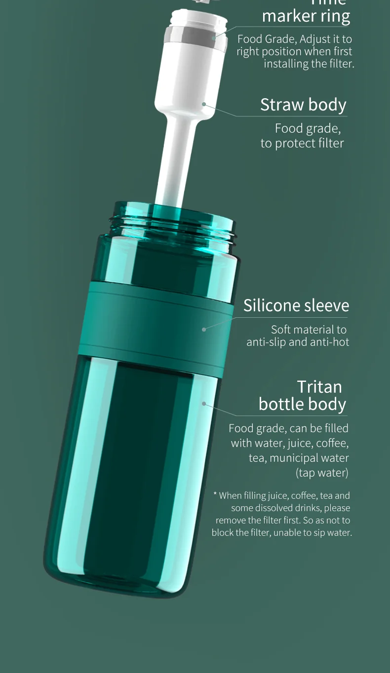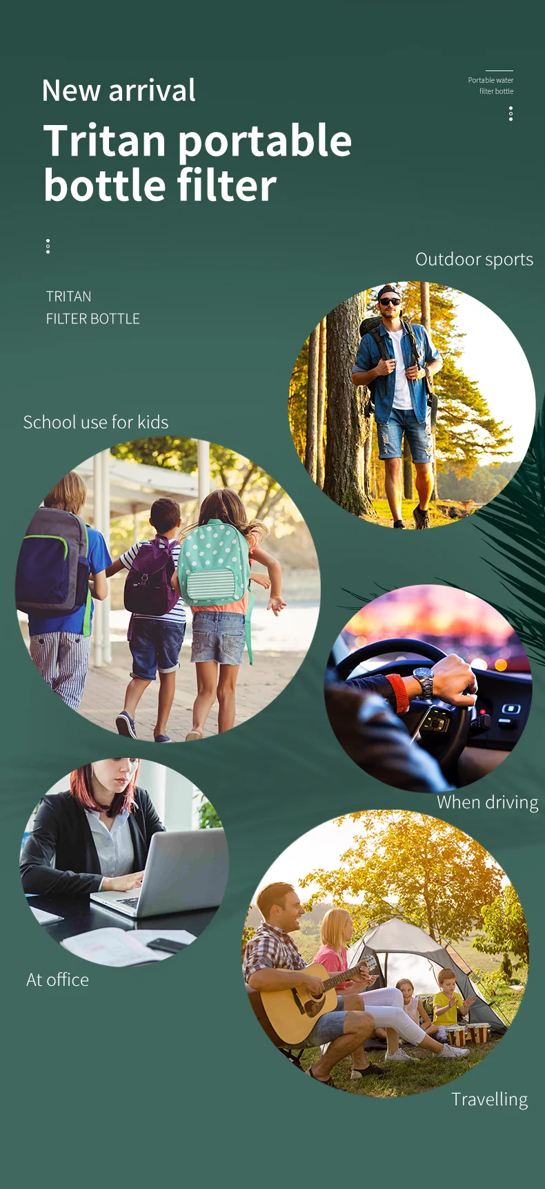 500ml BPA FREE PLASTIC Water Bottle Press the Button Pop-up Flip Lid Tritan Bottle Filter Portable Water Filter Bottle