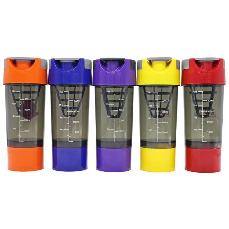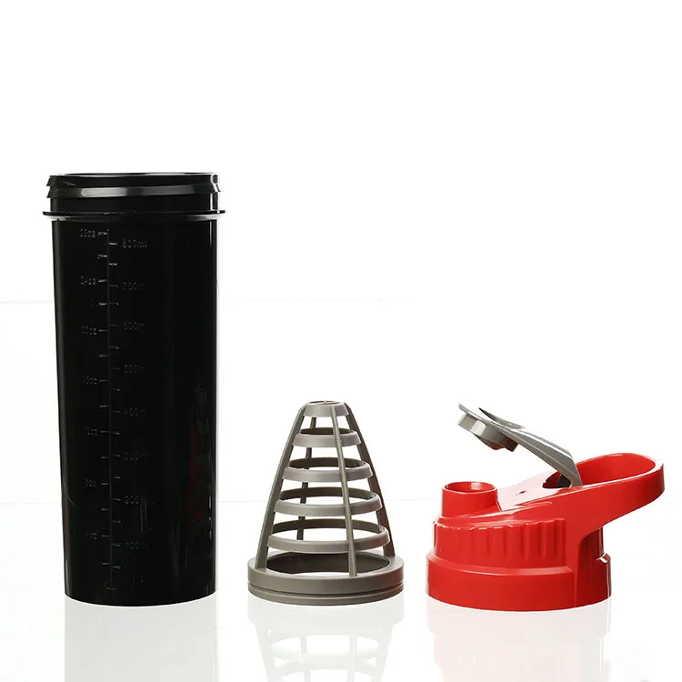 600Ml Wide Mouth Clear Motivational Plastic Protein Sports Shaker Water Bottle With Pill Box Capacity Scale