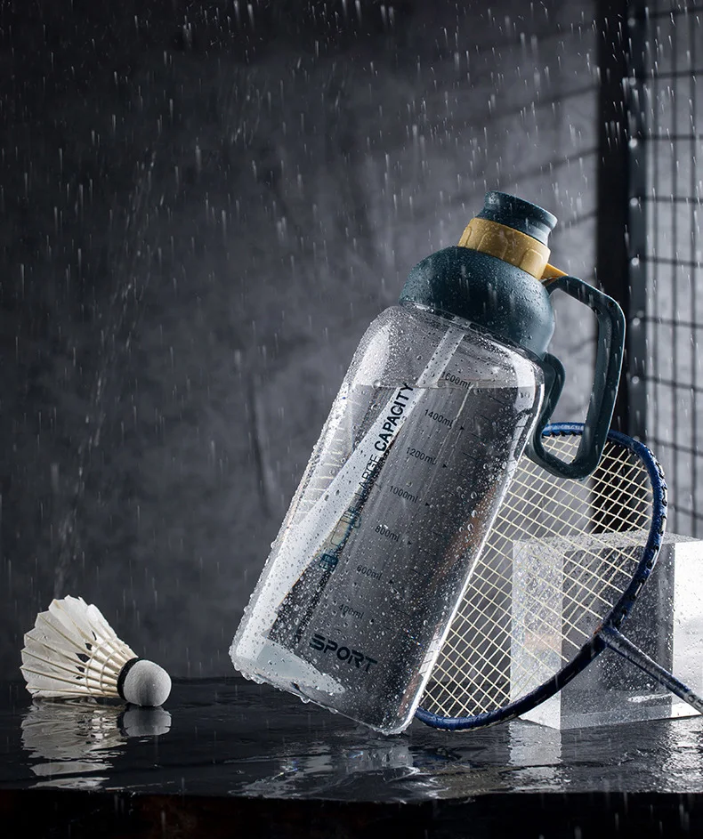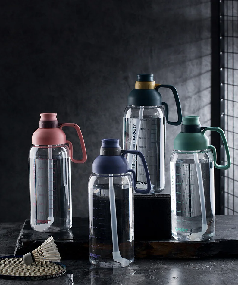60oz Large Capacity Plastic Water Bottle with Straw and Handle Suitable for Gym Supports Custom logo