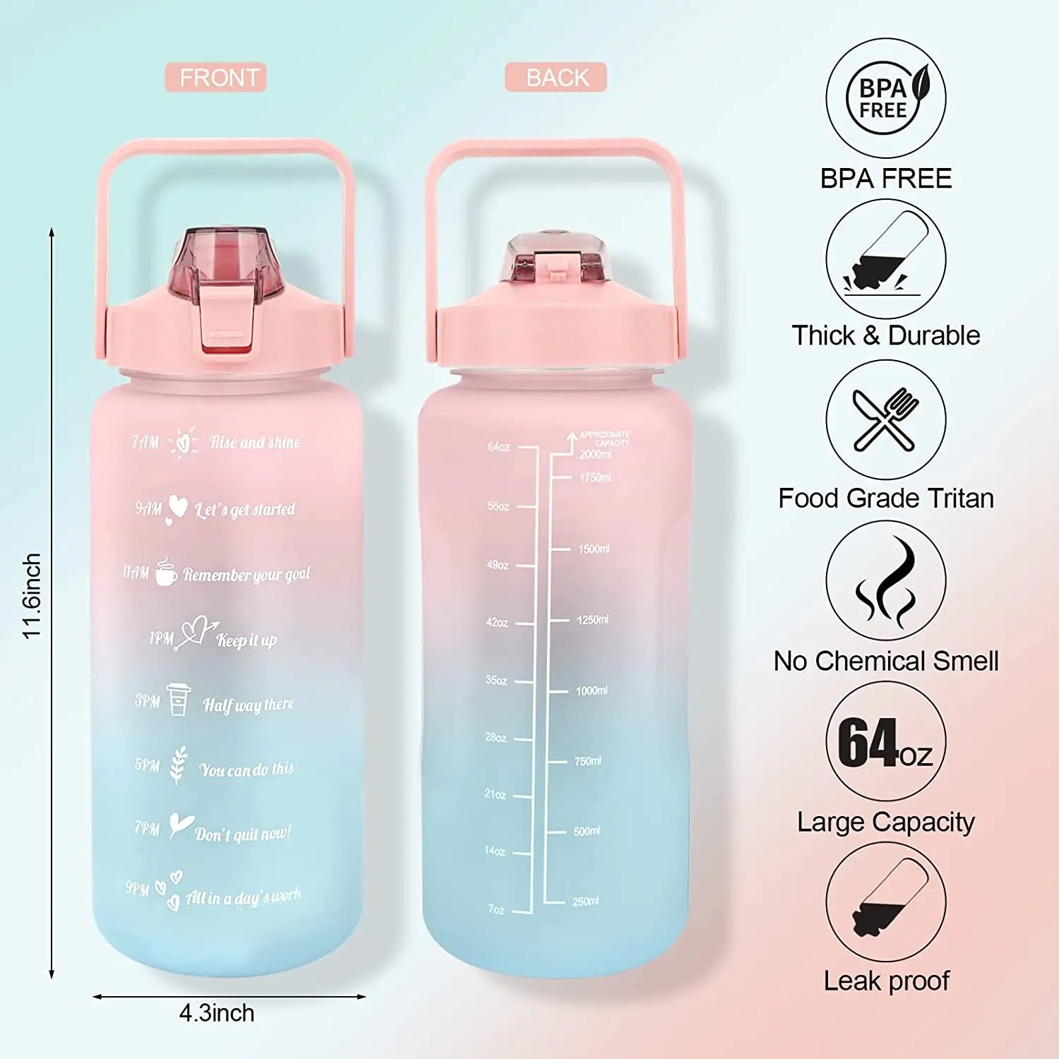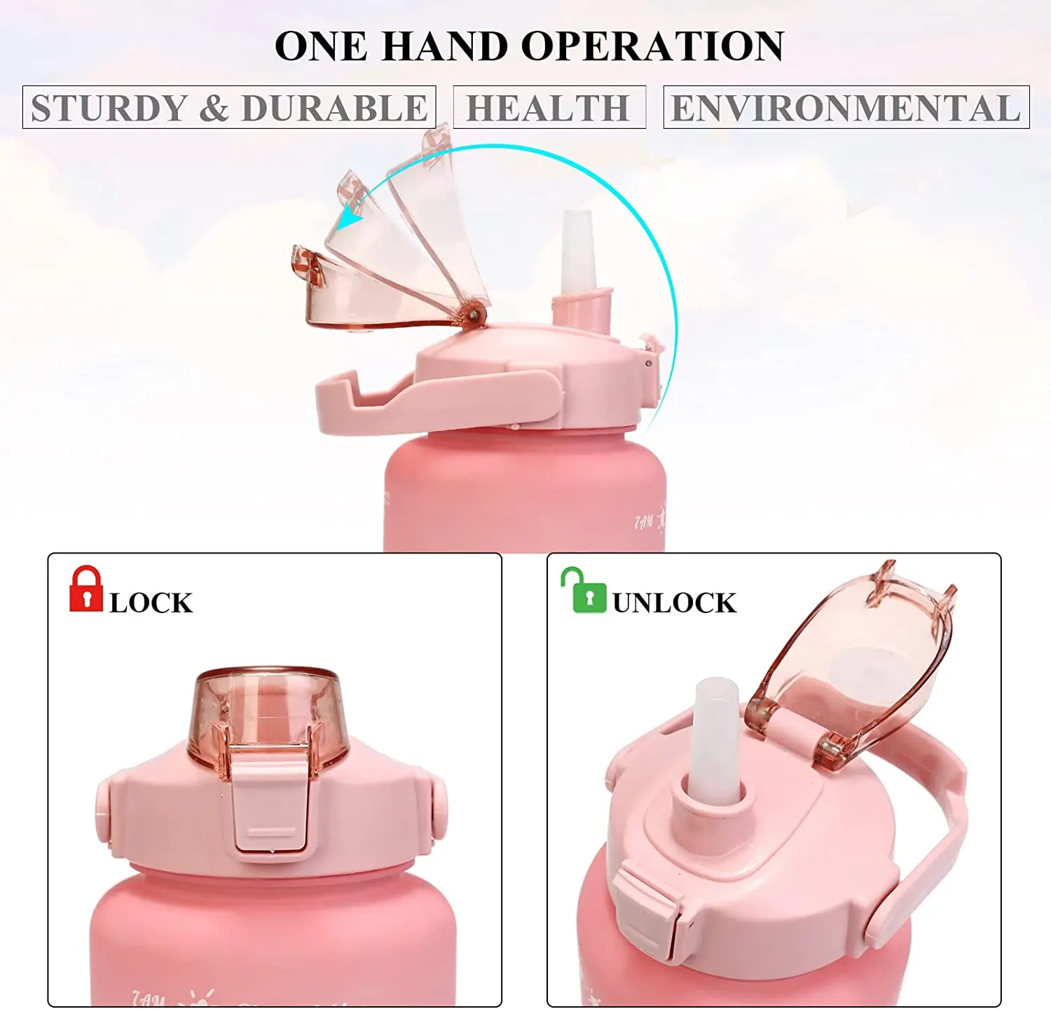 Our eco-friendly, leak proof, reusable water bottle with hourly markings is made from PETG plastic. Enjoy the durability and ease of use a reusable plastic bottle, free from all plastic tastes and odors.