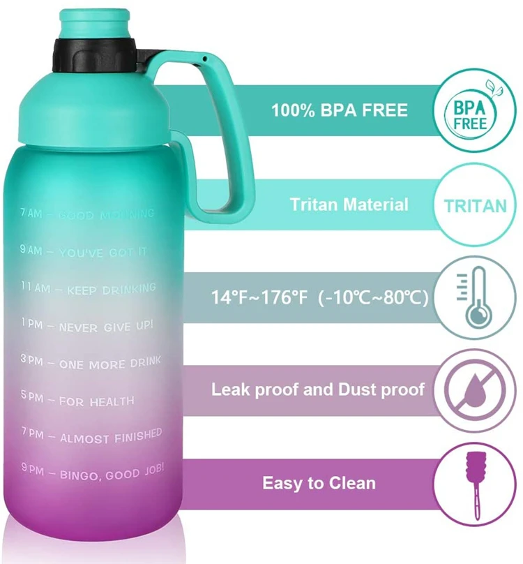 64oz Large Capacity 2.2 L 2.2L Leak Proof Botellas De Agua Gym Sports Water Bottle With Straw