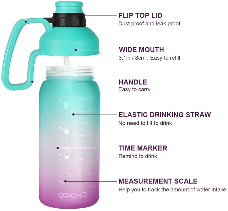 Home / Product Category / Plastic Water Bottle / 64oz Large Capacity 2.2 L 2.2L Leak Proof Botellas De Agua Gym Sports Water Bottle With Straw