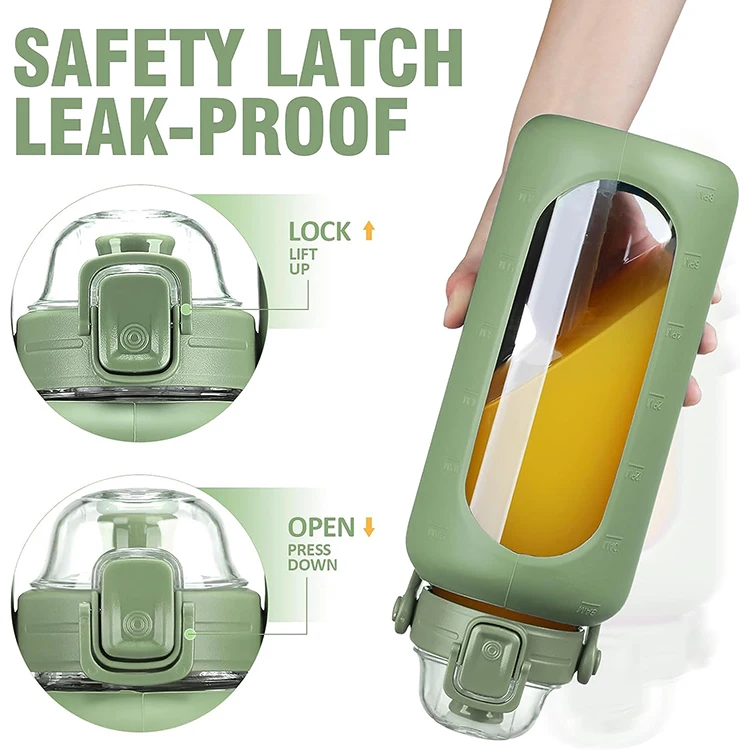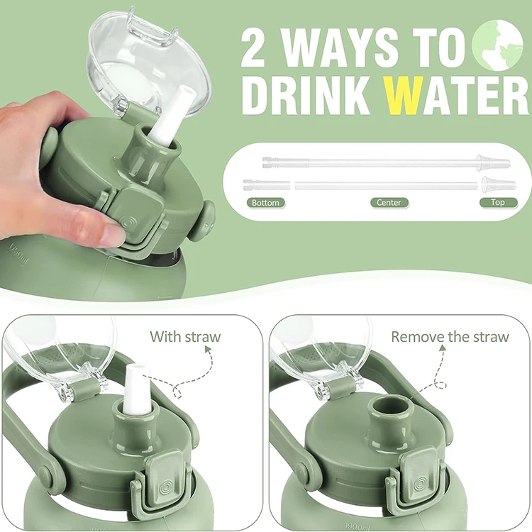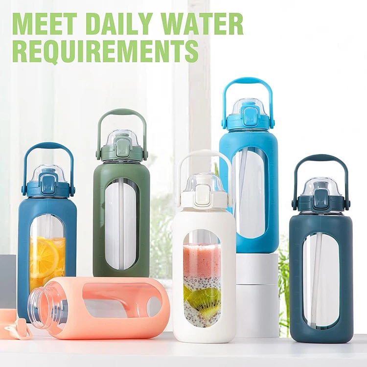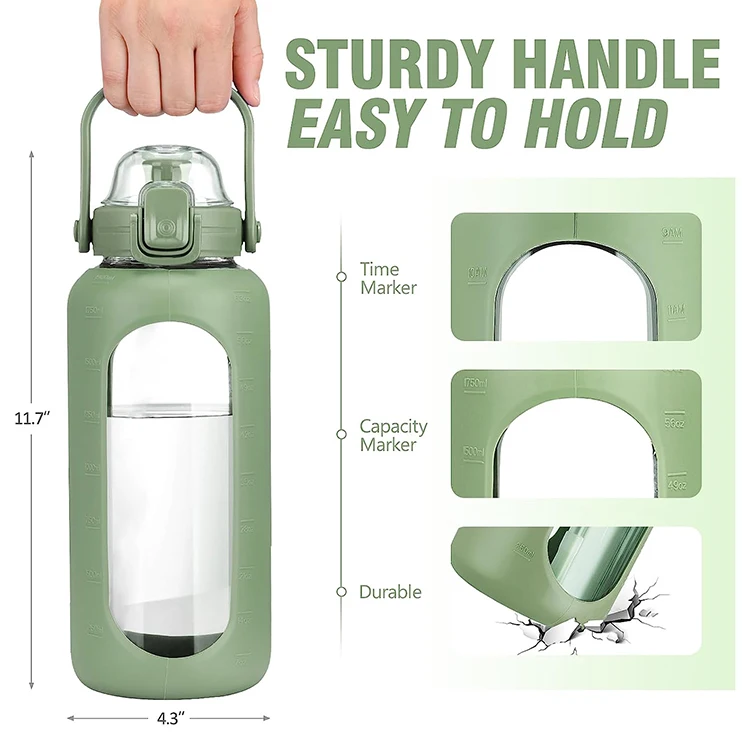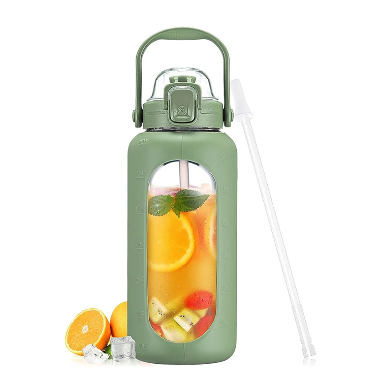64oz Plastic Water Bottles with Straw Professional Sports Water Bottles with Silicone Sleeve and Handle