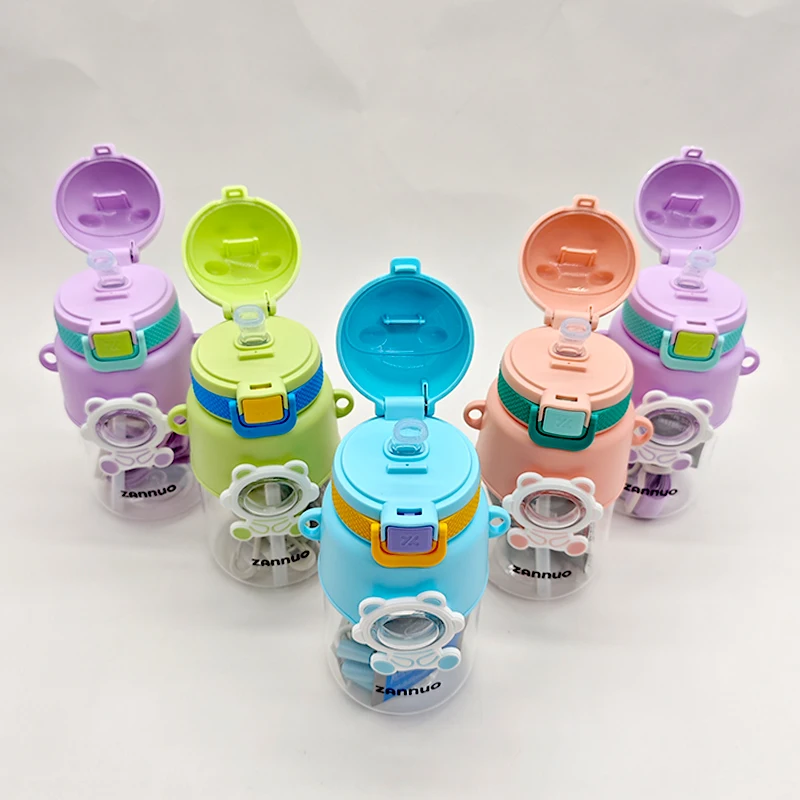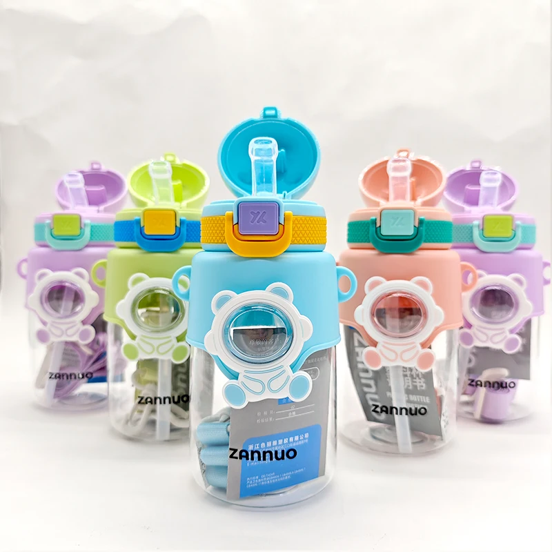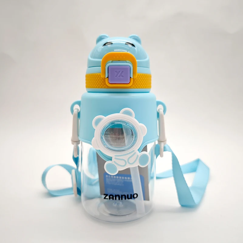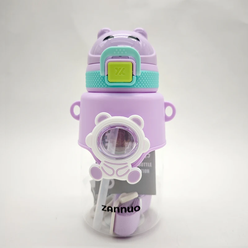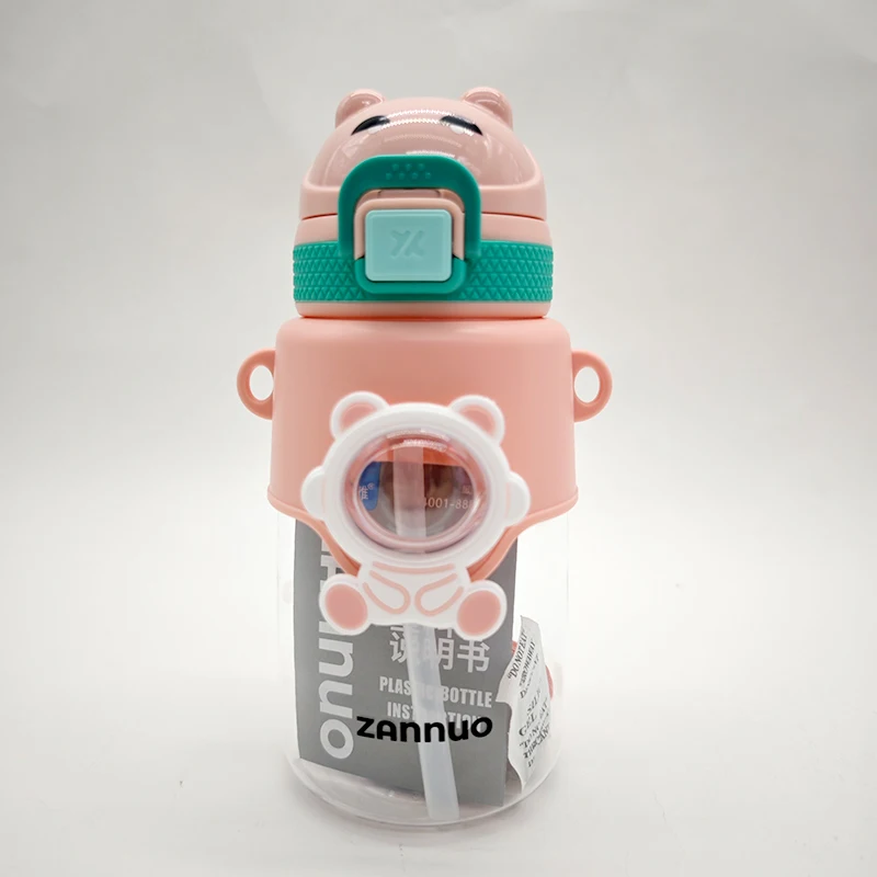 680Ml Leakproof Portable Wide Mouth Children'S Kids Kawaii Cute Plastic Water Bottle With Straw Strap