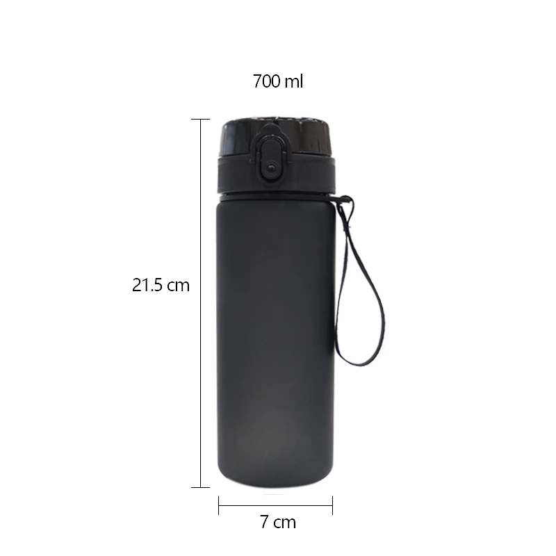 Home / Product Category / Plastic Water Bottle / 24oz water bottle / 700ml Sport Matte Solid Black 24oz Fitness Plastic Water Cup with a Portable Lanyard