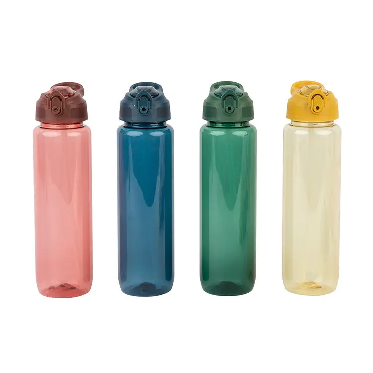 700ml Transparent with Color Wholesale Plastic Sports Drink Water Bottle with Lid and Straw