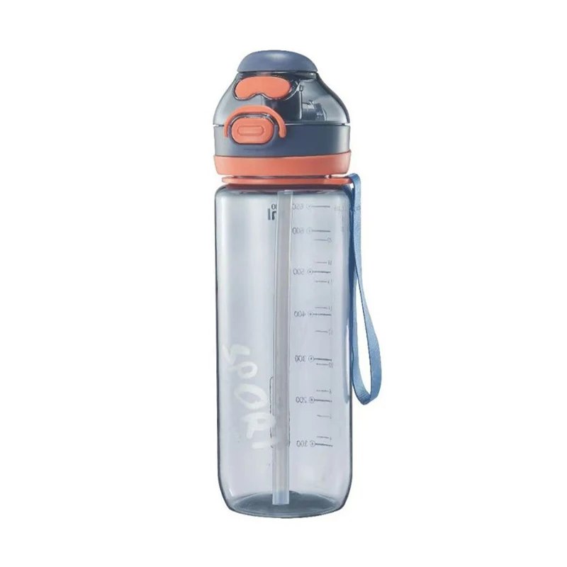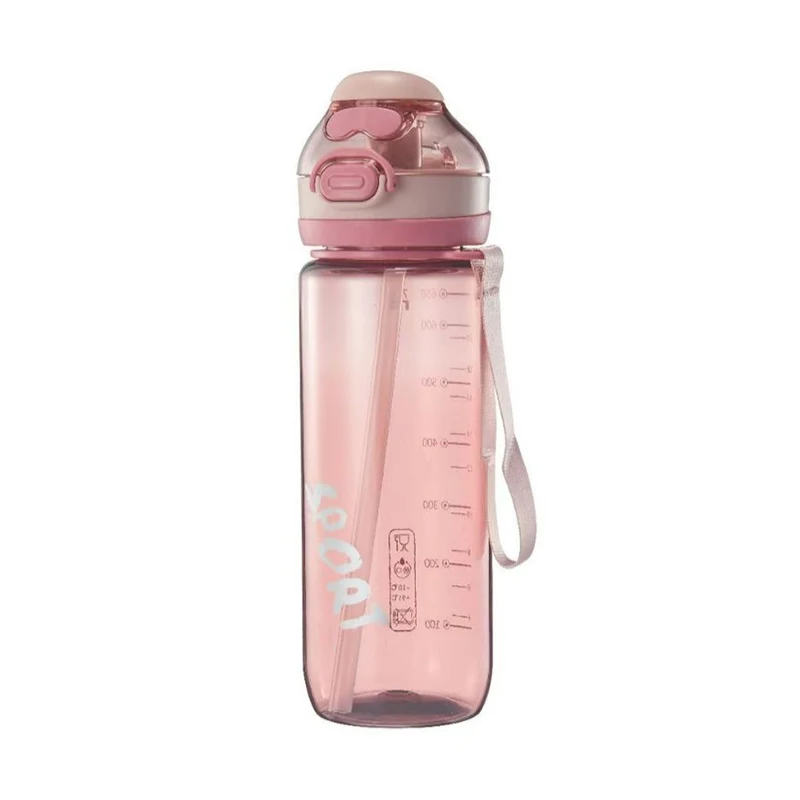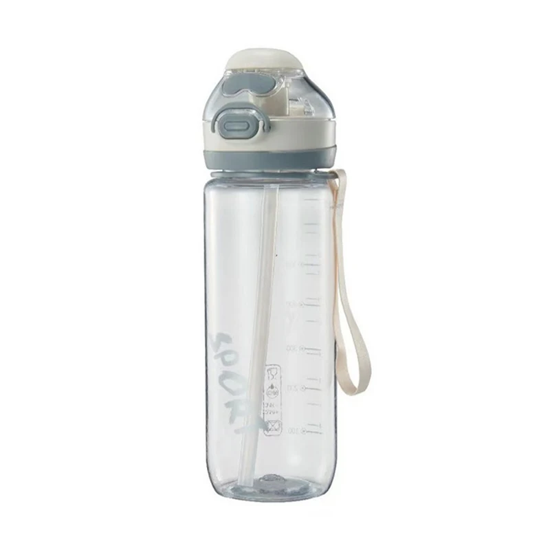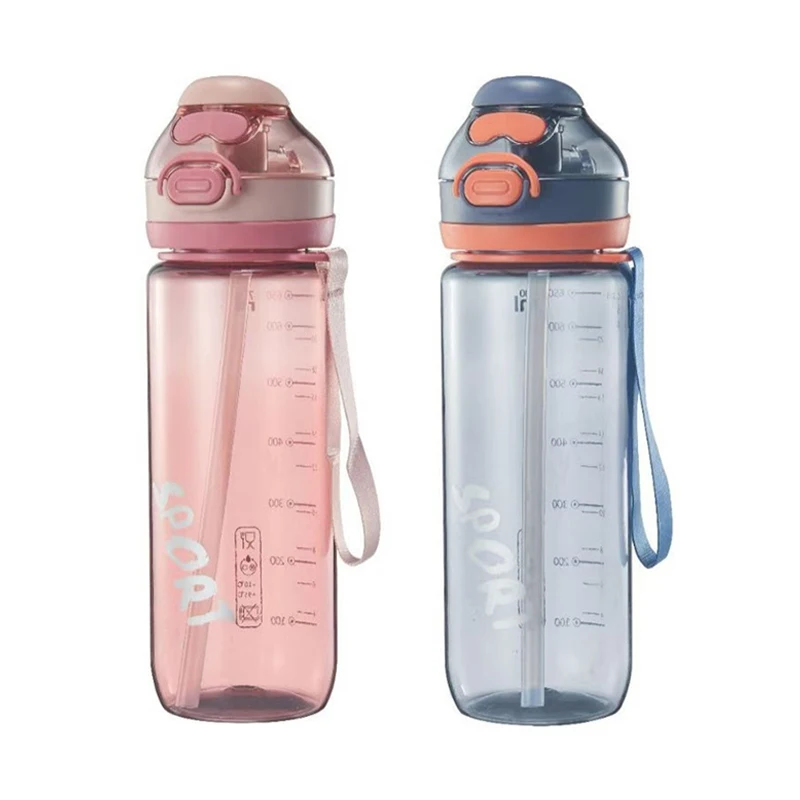 750Ml Graduated Leakproof School Clear Transparent Plastic Sports Water Bottles With Straw Rope