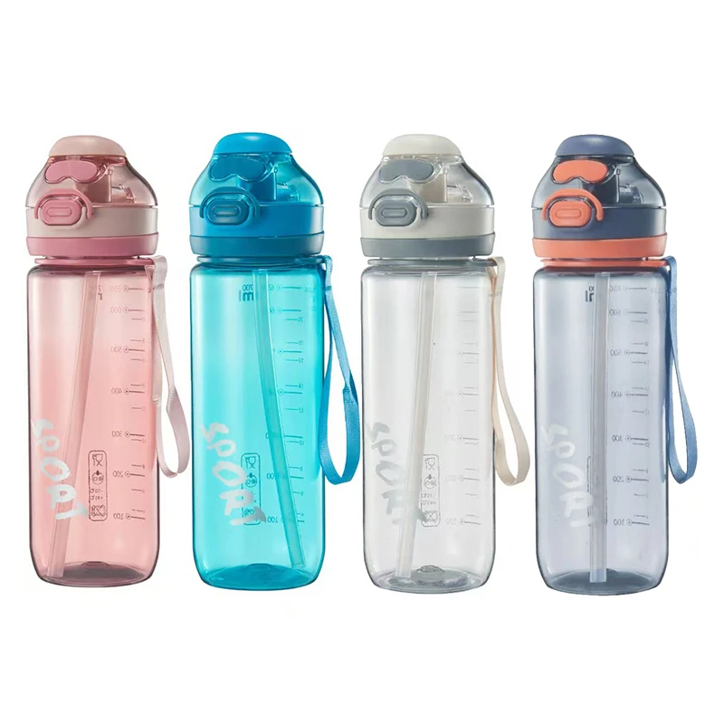 Home / Product Category / In Stock / 750Ml Graduated Leakproof School Clear Transparent Plastic Sports Water Bottles With Straw Rope