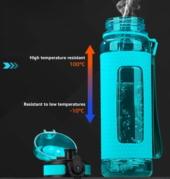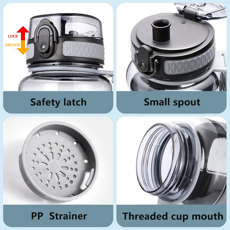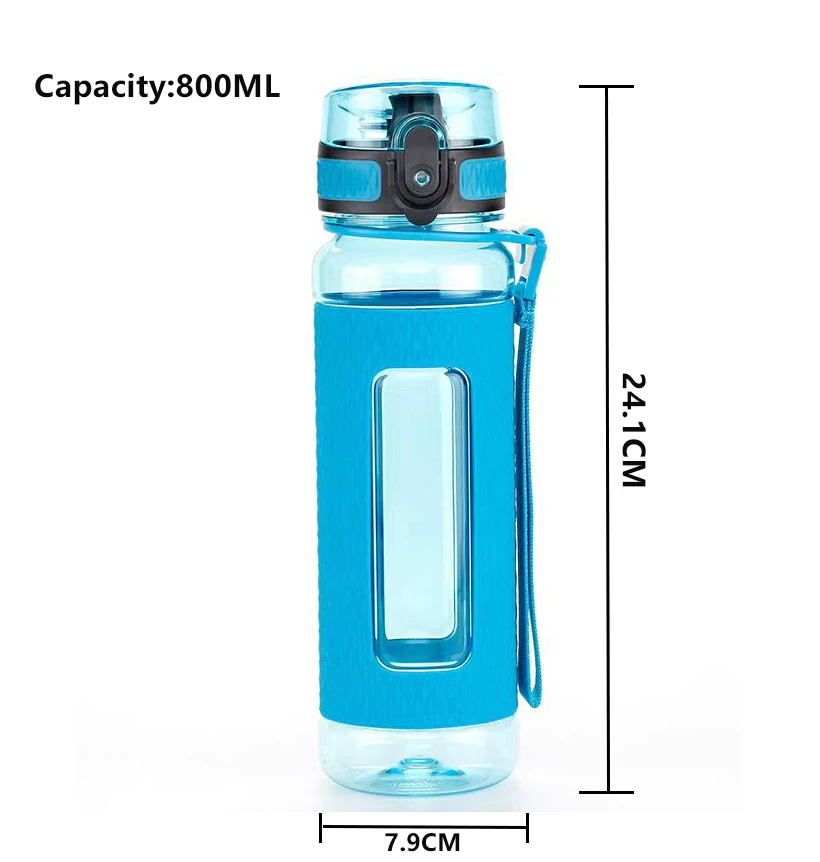 800Ml Wide Mouth Transparent Plastic Sports Water Bottle Direct Drinking Type Bottles With Strainer Rope
