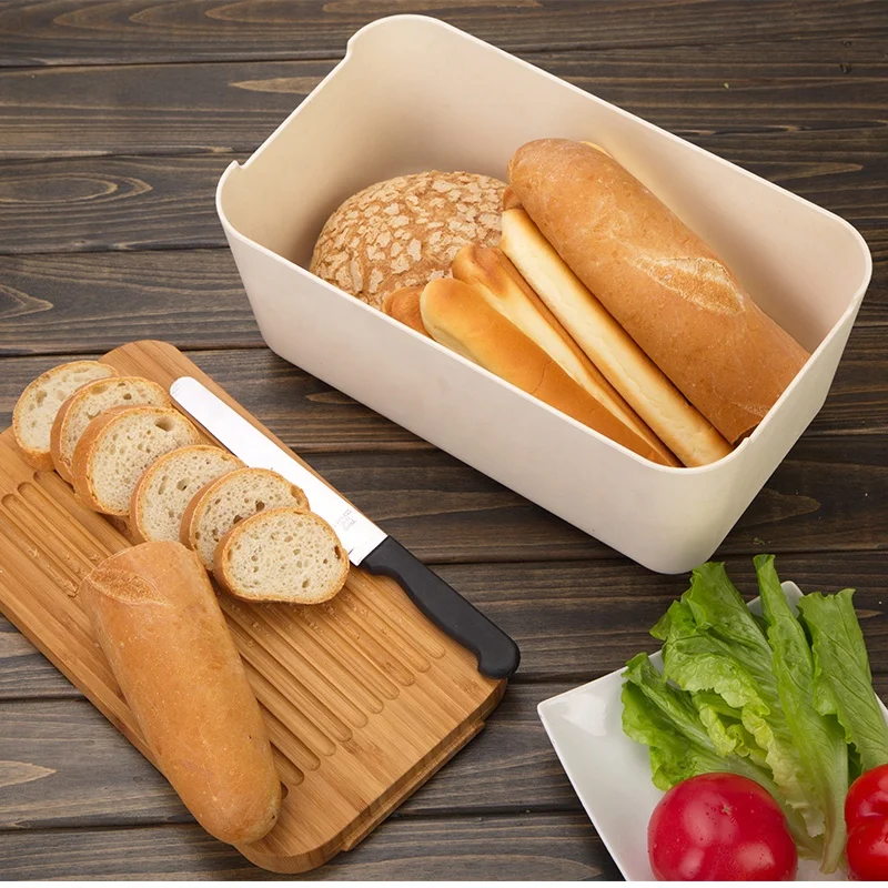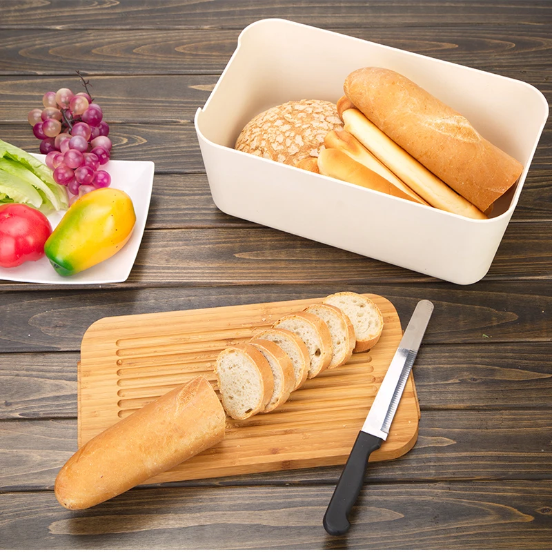 * BAMBOO CUTTING BOARD -- The bread bin lid is made up of bamboo, it can be a lid, also be a cutting board. The cutting board has a recessed thickness that snugly fits in the box to ensure don't shake and the air circulation and keep bread fresh.
