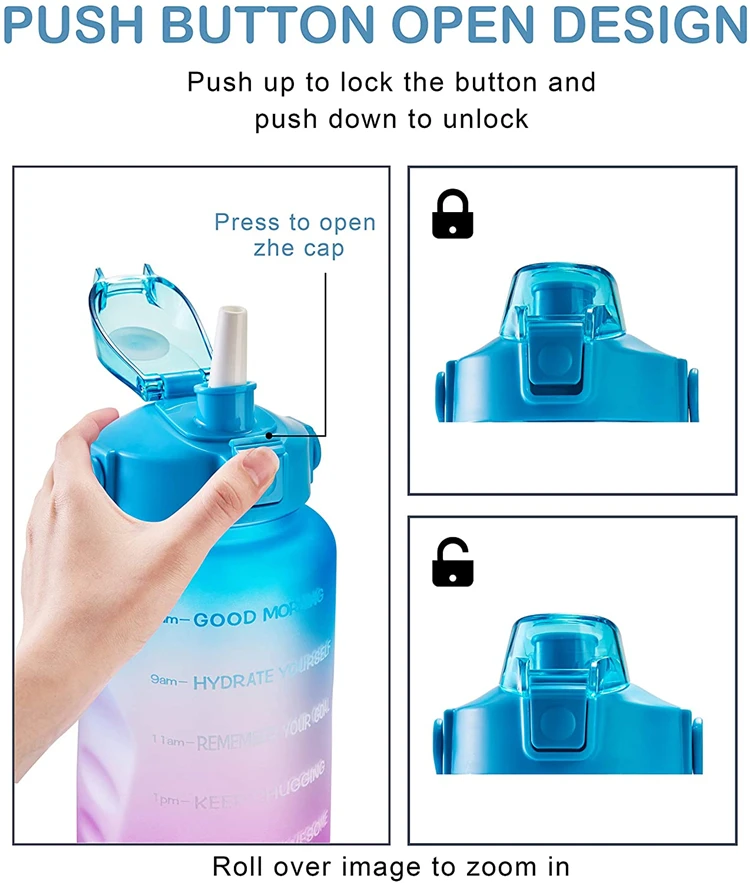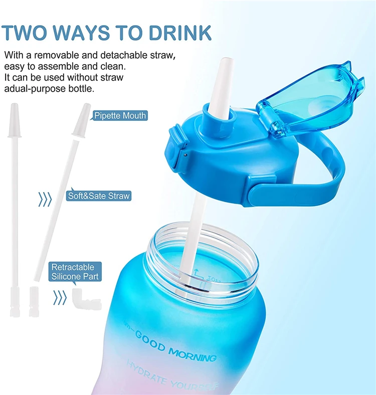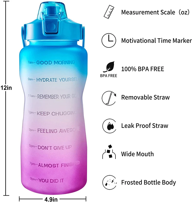 Custom Logo Bpa Free Customized Wholesale 2.2L Large Half Gallon 64Oz Gym Motivationa Water Bottle