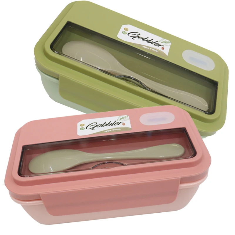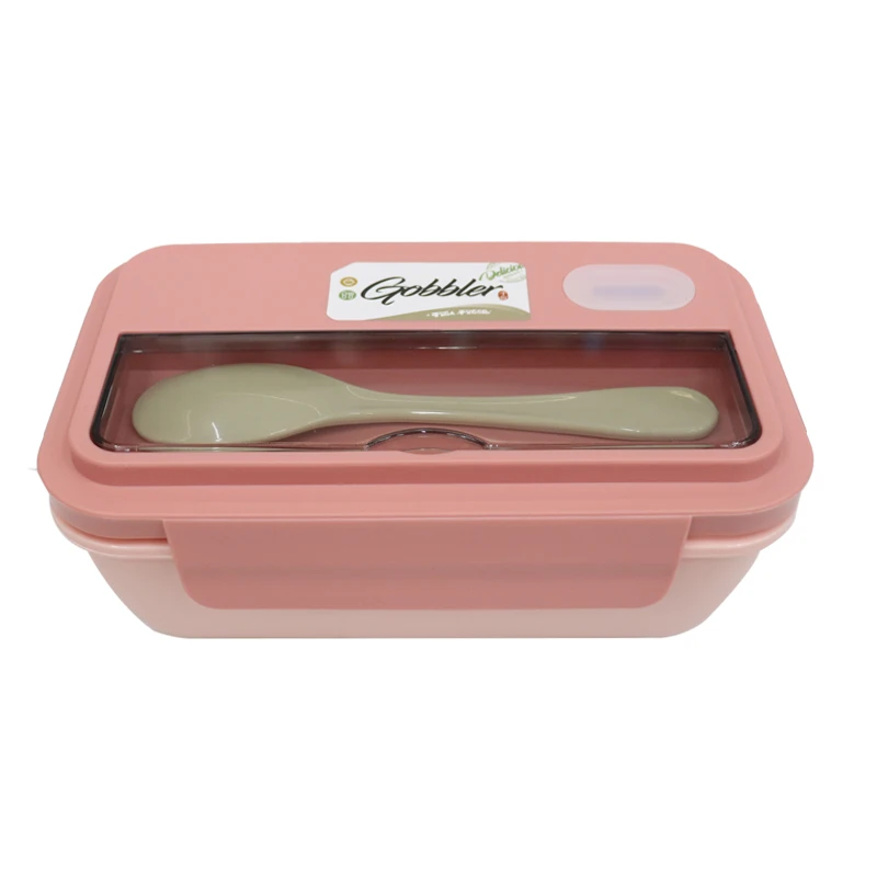 Cute and Portable Plastic Lunch Boxes with Spoons for Picnics Which Can Be Heated