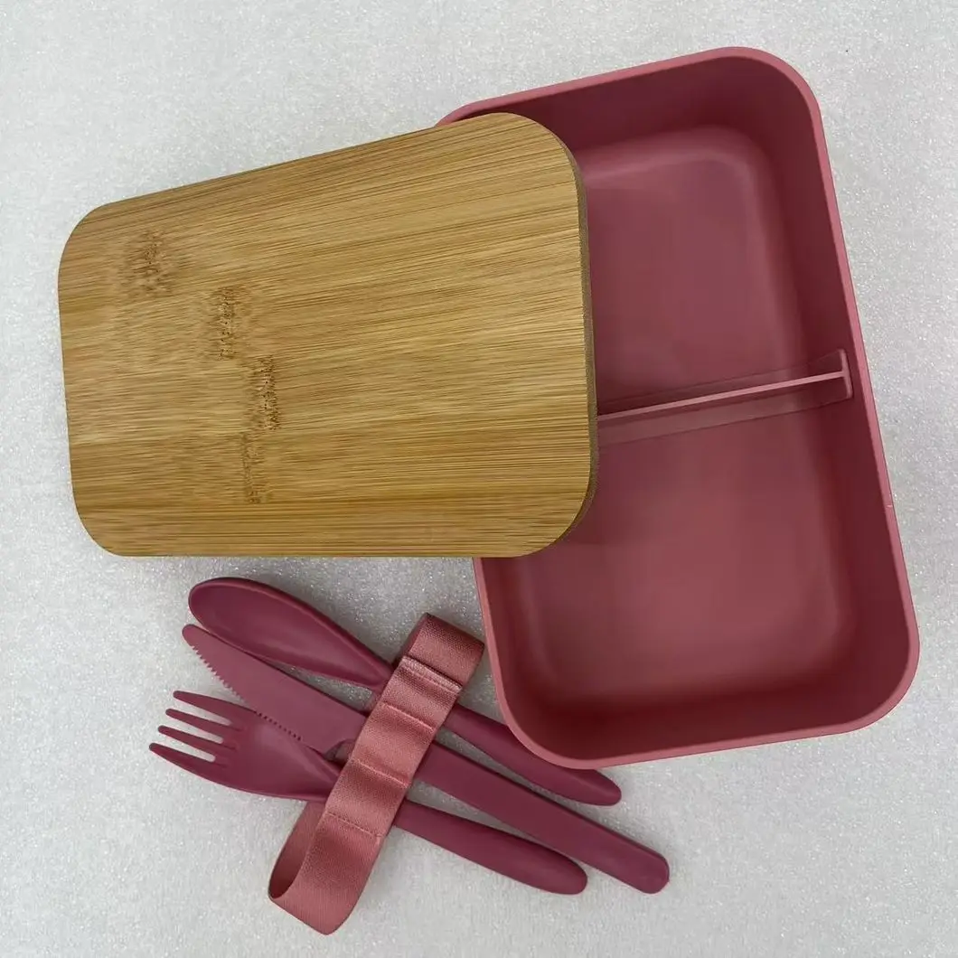 Eco- Friendly Lunch Box Made of RPET Material Suitable for Everyone Comes with Bamboo Lid As Well As a Knife a Fork and a Spoon