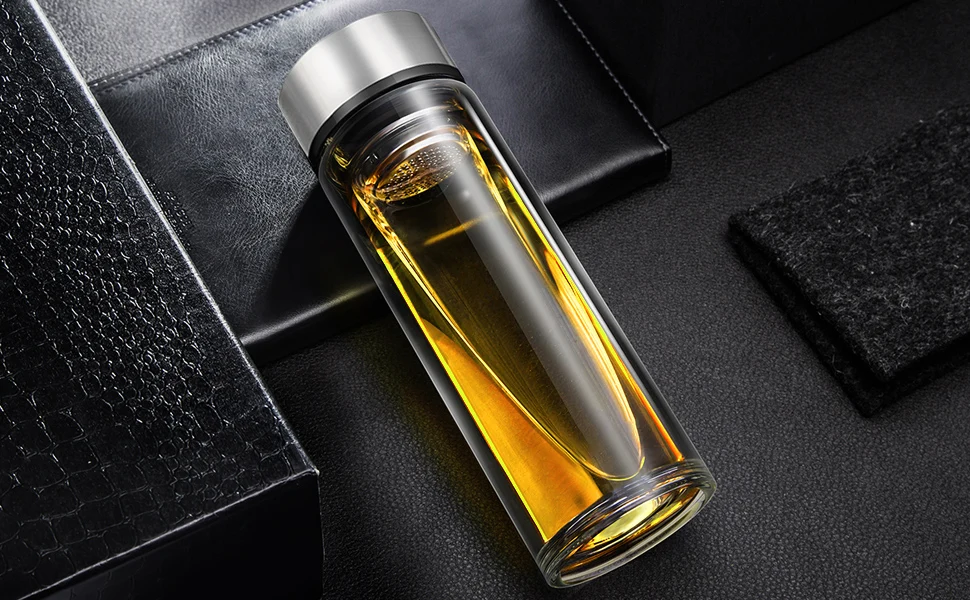Glass Tea Infuser Bottle Double Wall Borosilicate Portable Tea Bags 12OZ/350ml