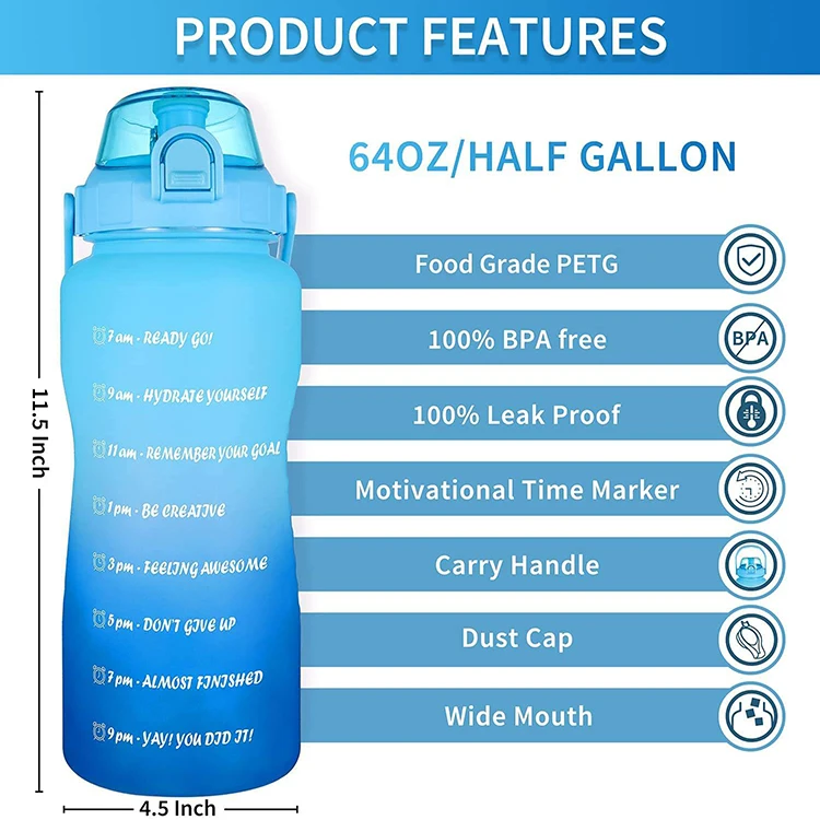 Home / Product Category / Plastic Water Bottle / 64oz water bottle / Gym Cute Water Bottle With Custom Logo for Kids Sports Bottles