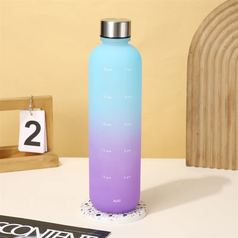 High Quality 1000Mls Narrow Mouth Colorful Bpa Free Plastic Water Bottles With Time Marker