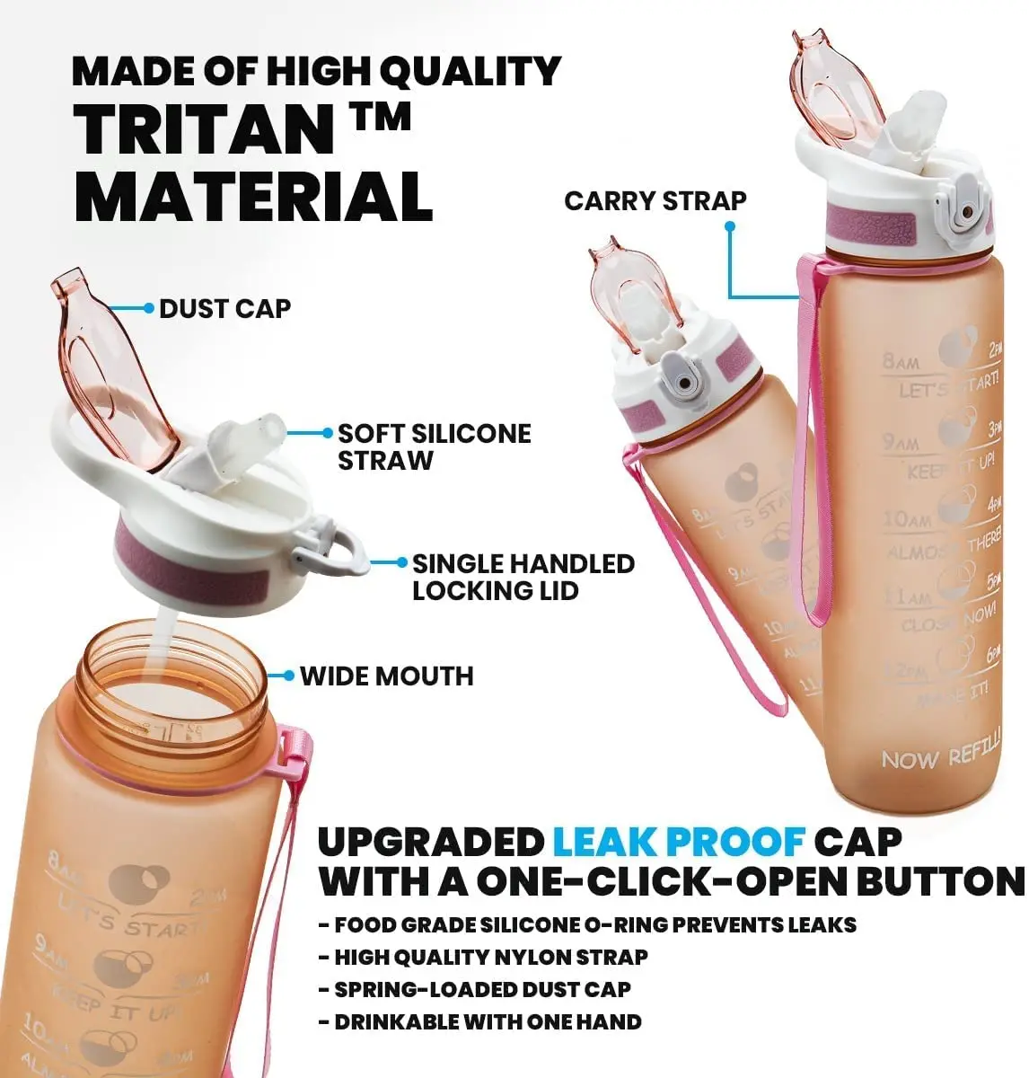 Home / Product Category / Guaranteed Products / High Quality 1L 1000Ml 32Oz Wide Mouth Motivational Plastic Gym Sports Water Bottle With Strap