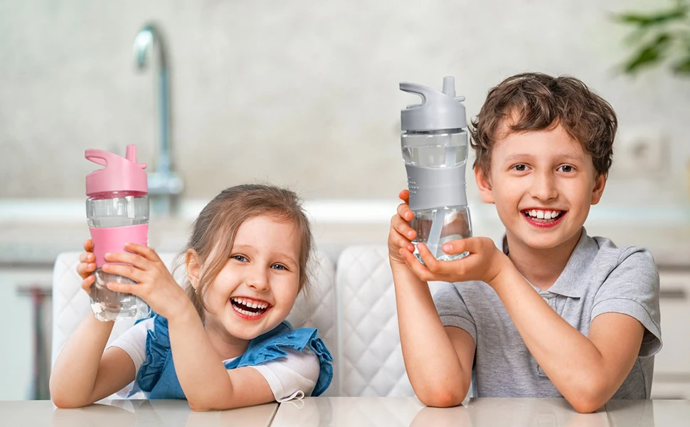 Hot Sales Supermarket Customize Pattern Kids Water Bottle Plastic Water Bottle With Straw for Kids BPA Free 350 ML Cute Children