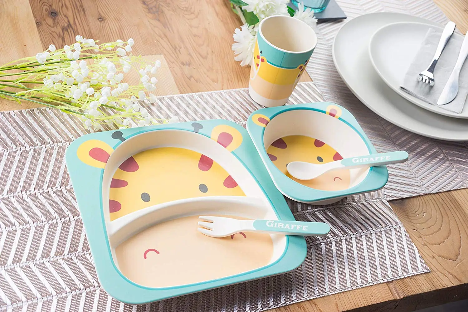 Household Children Kitchen Set Bamboo Fiber Kids Dinner Set Children Dinnerware