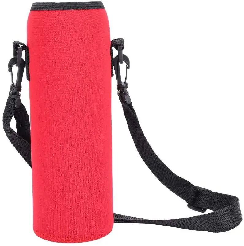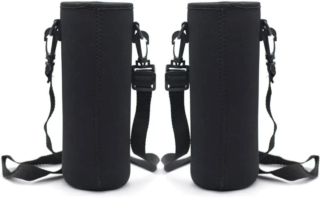 About this product ❄ Water bottle cooler sleeve size: 3 in diameter, 8.3 in height. If your bottle is between 3 and 3.4 inches (7.5 to 8.5 centimeters) in diameter, it will fit.Fits in 32 oz (900-1000 ml) glass or plastic bottles. ❄ What is the bottle cover made of? Sport bottle covers are made of durable neoprene rubber.Soft to the touch, elastic and light in weight, it keeps the water cool or warm and prevents the bottle from sweating.The sleeve edge is snug to the bottle, easy to slip on and off.With shoulder straps.
