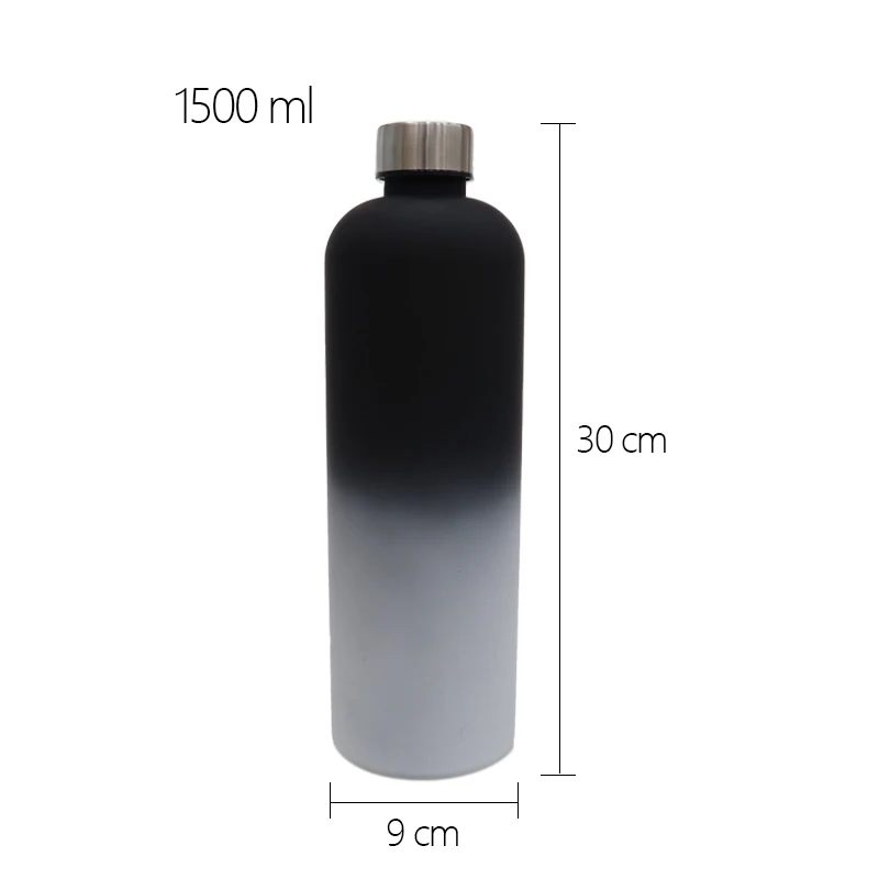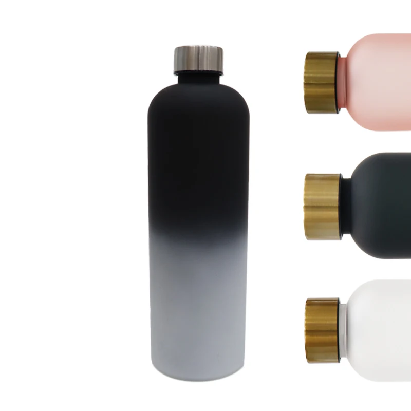 New Arrival Colorful Gradient Sports Water Bottle 1L Plastic Cup With Stainless Steel Lid and Time Marker