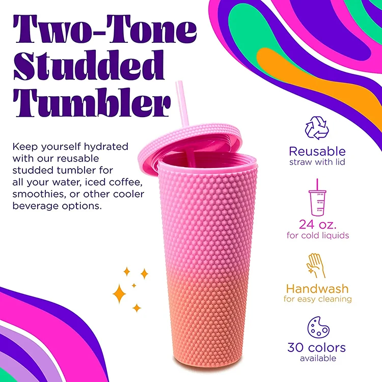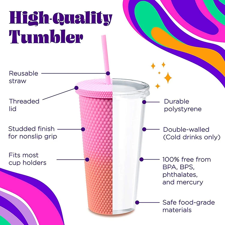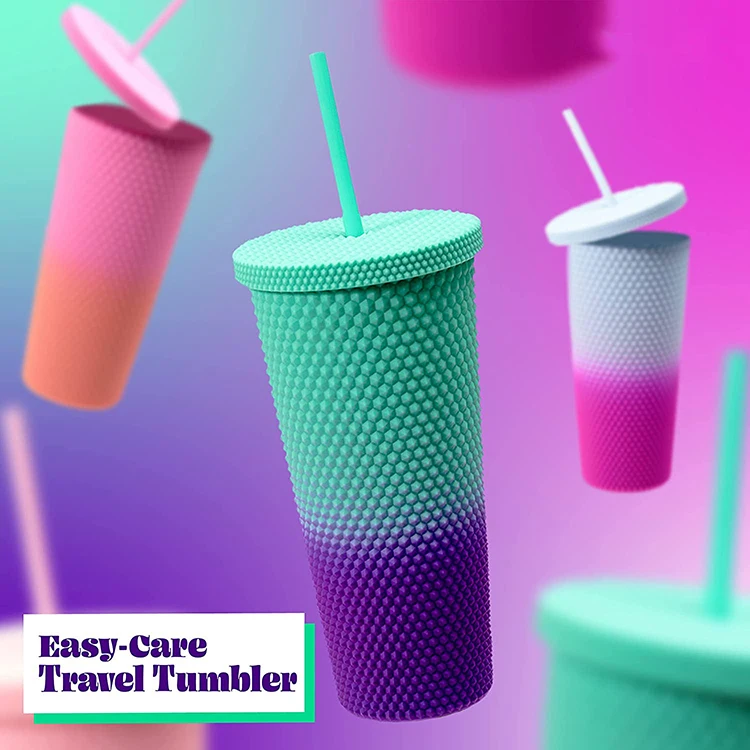 Home / Product Category / Plastic Cup / OEM ODM logo and Color BPA FREE Eco Plastic 20oz 24oz Diamond Tumbler Durian Cup studded Tumblers Cups With Lid and Straw