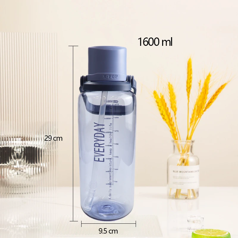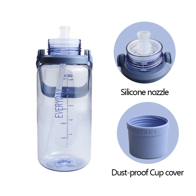 Portable Leakproof 54oz Sport Plastic Drinking Water Bottle with Dust Proof Cup Cover and Straw