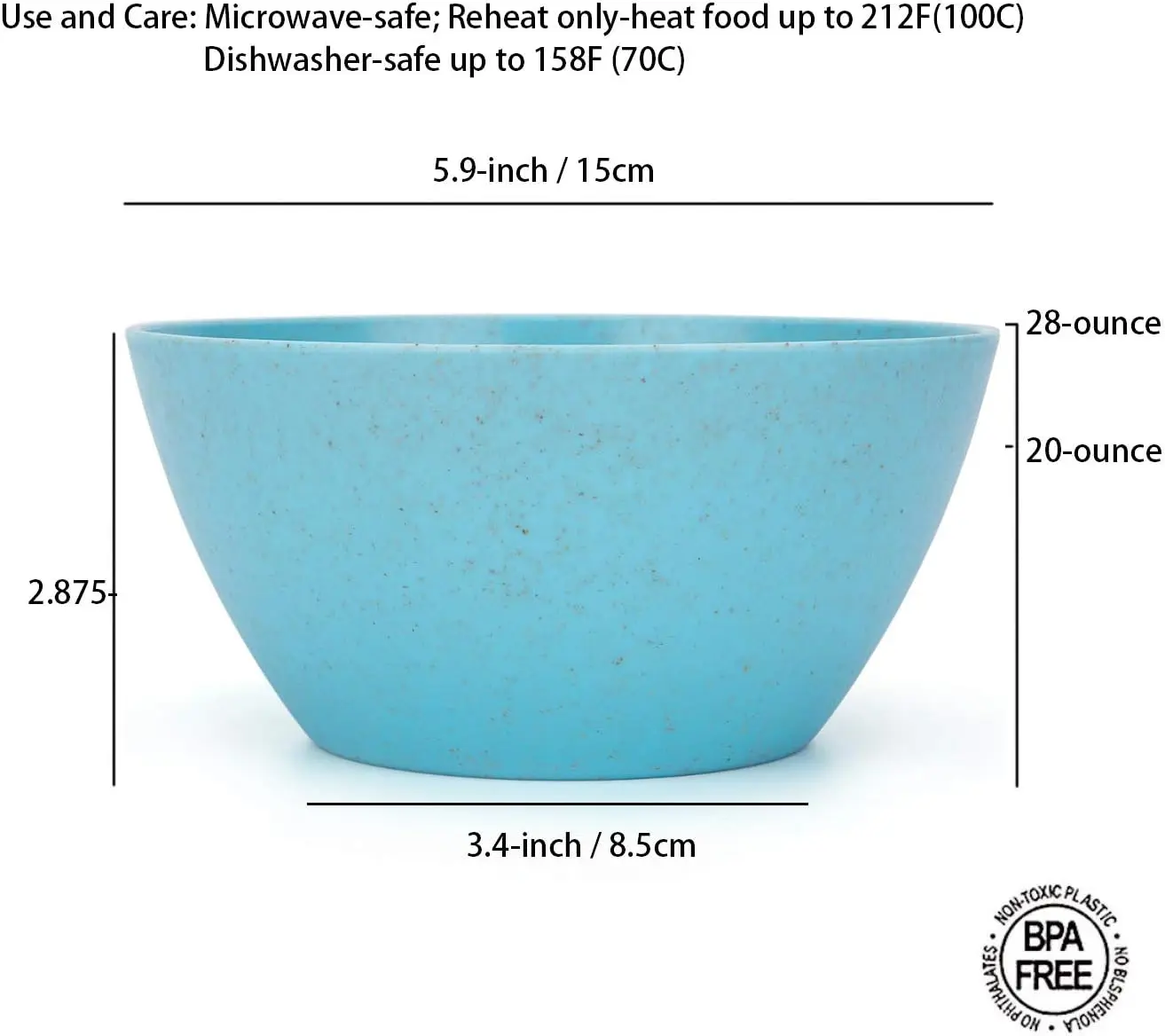Rpet Plastic Unbreakable Bowls 24 OZ Set Reusable Cereal Soup Bowls Microwave and Dishwasher Safe Bowl