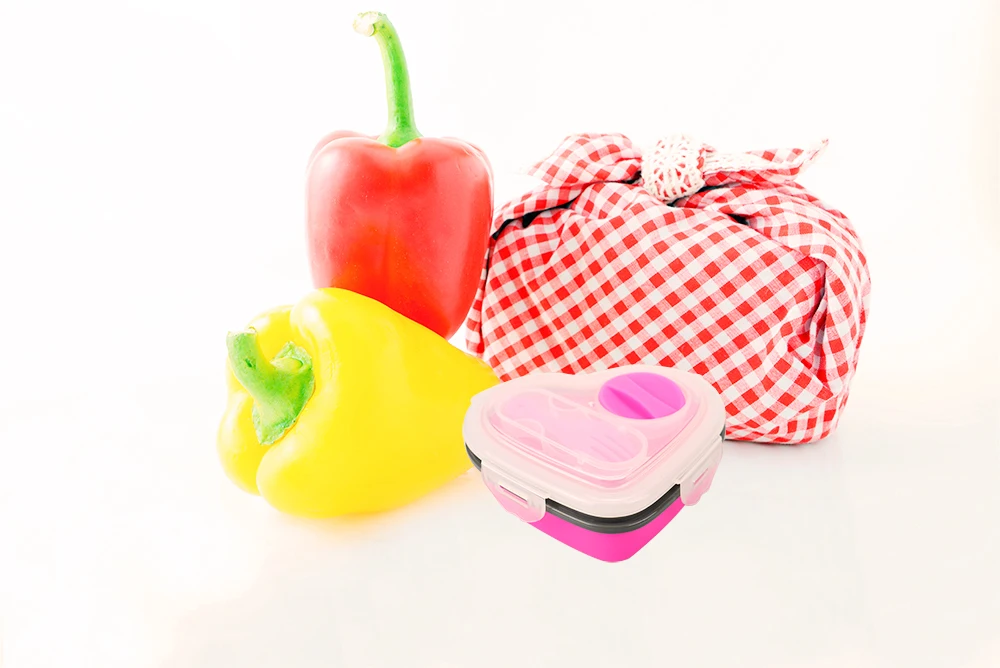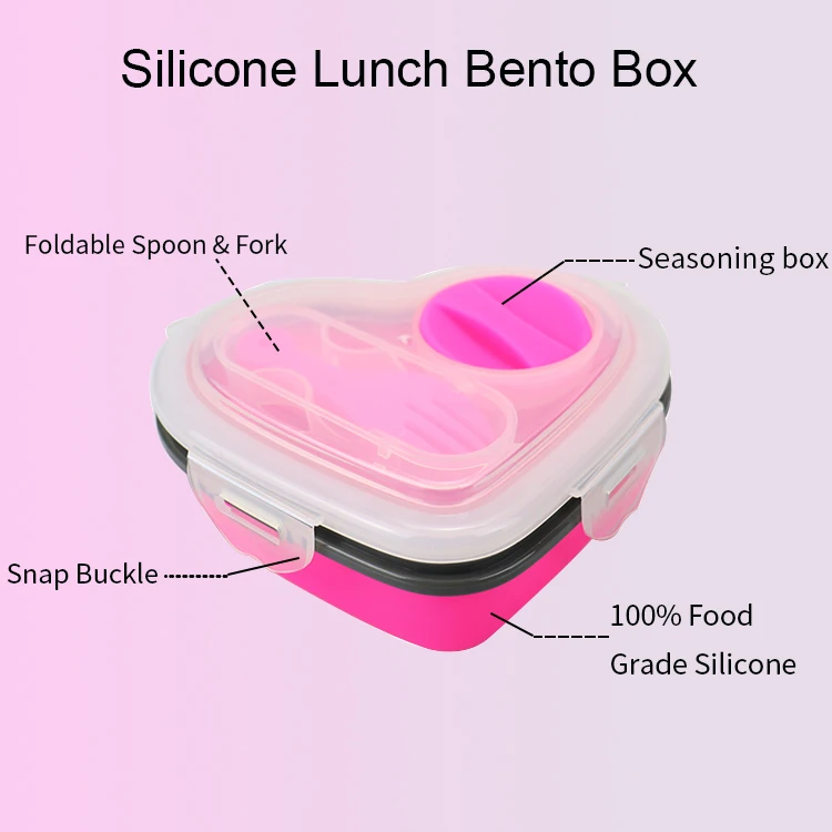 Silicone Bento Container BPA Free Food Storage Organizer Leakproof Heart Shape Lunch Box With Fork and Spoon
