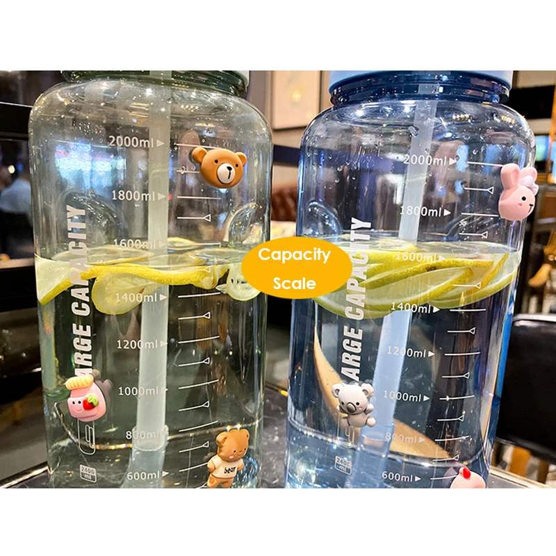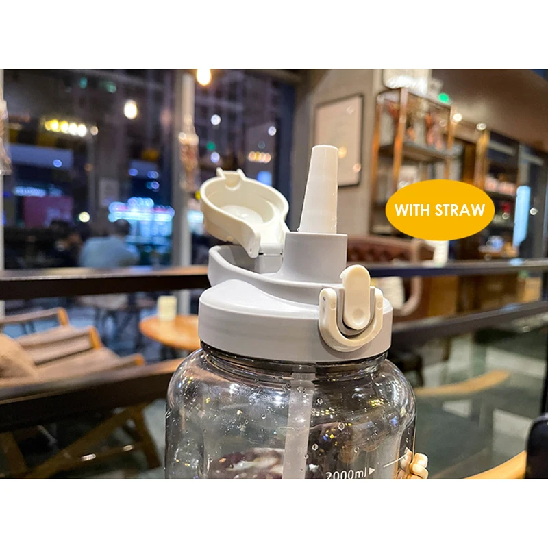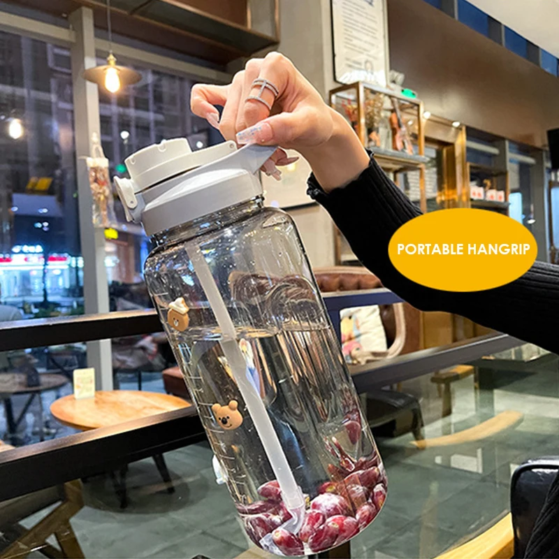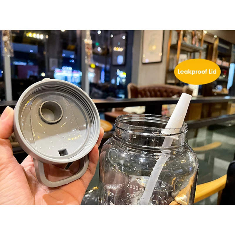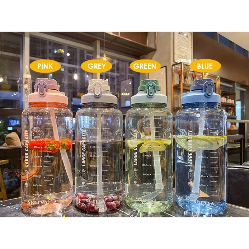 Wholesale 2400Ml Reusable Leakproof Clear Big Sports Bottles Plastic Water Bottle With Handle Straw