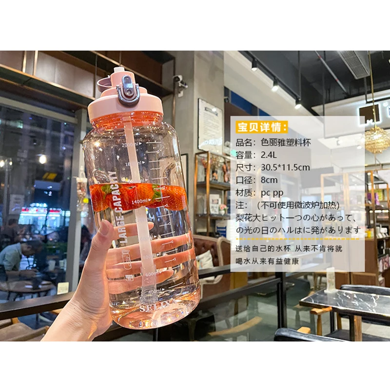 Home / Product Category / In Stock / Wholesale 2400Ml Reusable Leakproof Clear Big Sports Bottles Plastic Water Bottle With Handle Straw