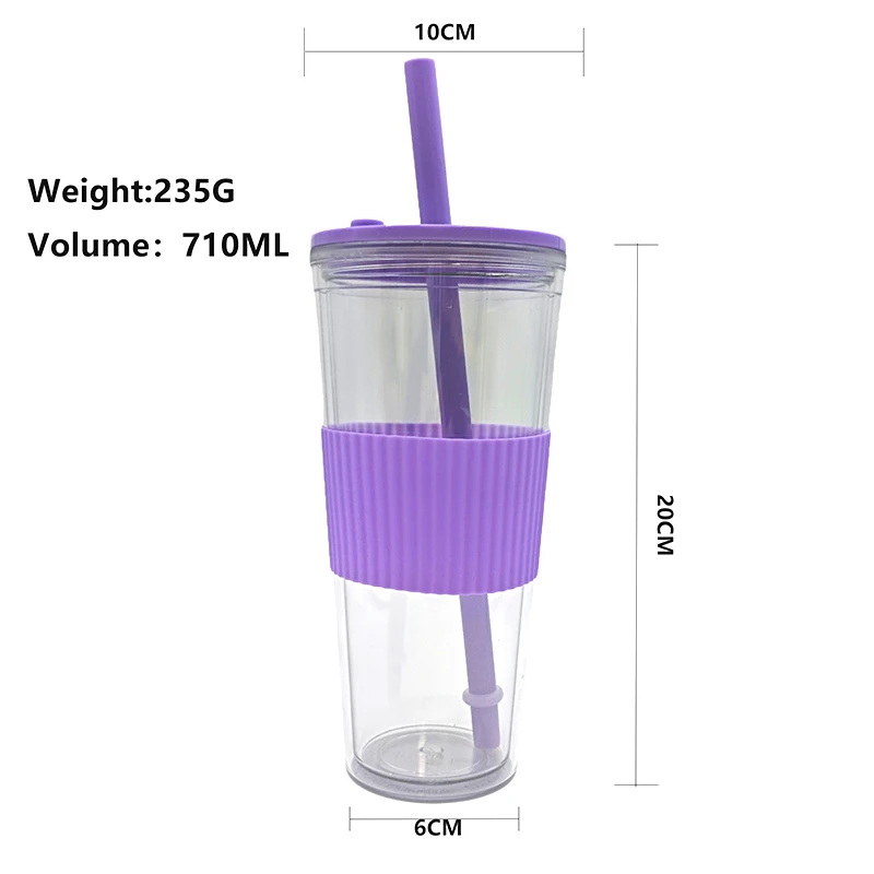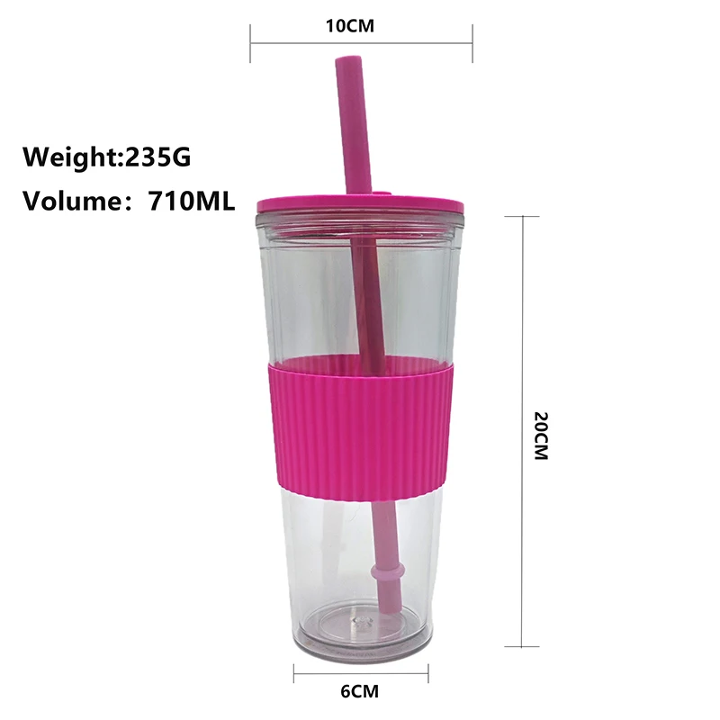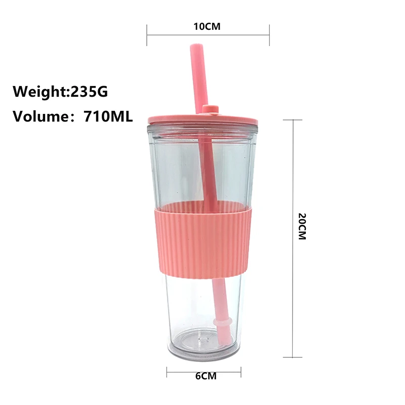 Home / Product Category / 2025 New / Wholesale 710Ml Custom Logo Leak Proof Reusable Clear Plastic Drink Tumbler With Straw Lid