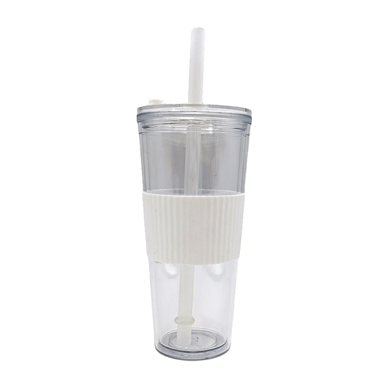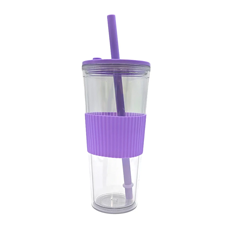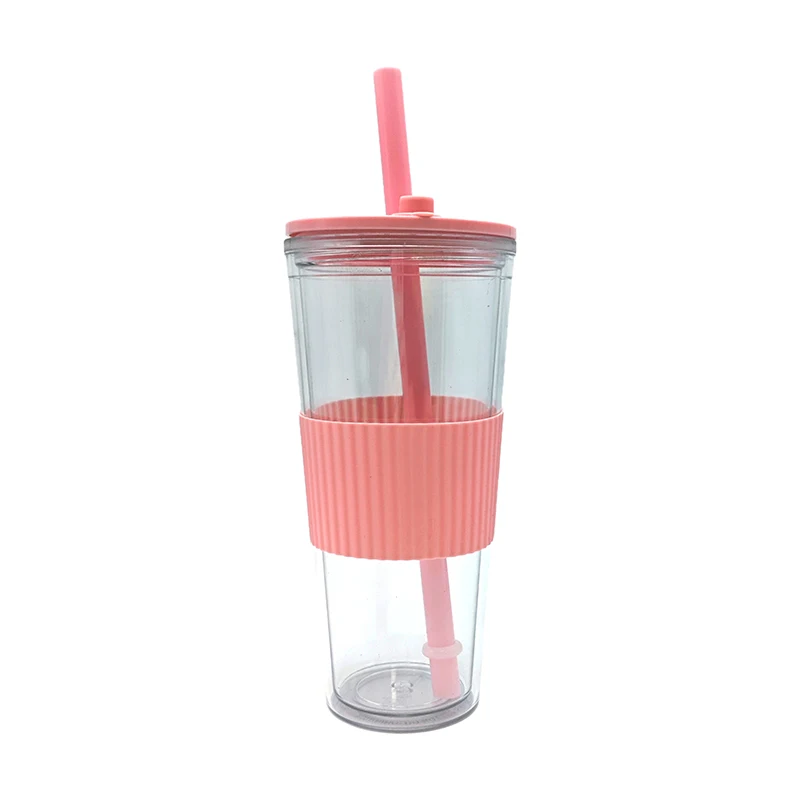 Wholesale 710Ml Custom Logo Leak Proof Reusable Clear Plastic Drink Tumbler With Straw Lid